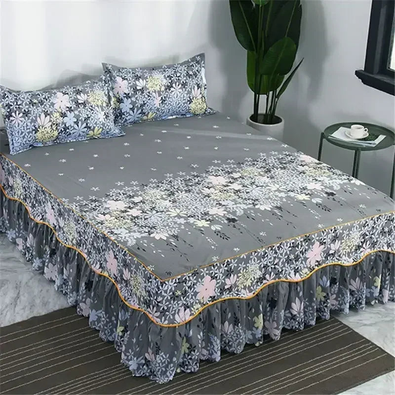 Transform your bed into a flower bed with this 3PCS bedding set that includes a non-slip bed dress sheet for king/queen. Say goodbye to slipping sheets and hello to a comfortable and stylish sleep. (Note: This set does not include a bedspread.)