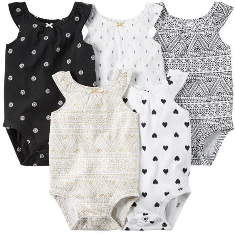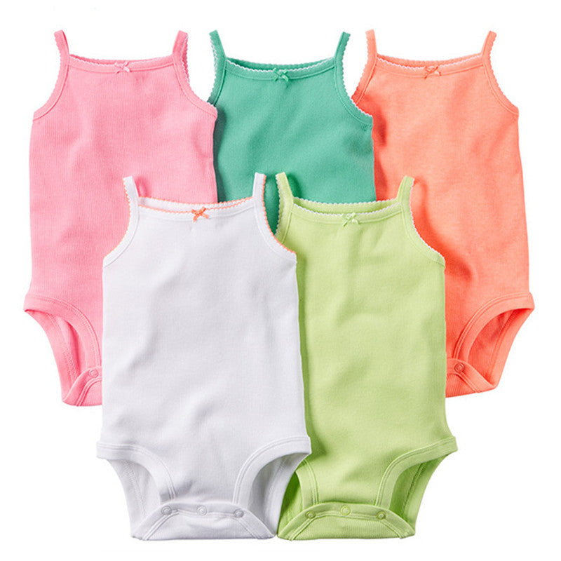 Discover the charm and comfort of our 5 Pieces/Lot Baby Bodysuits Sling Sleeveless Short Sleeved Cotton Baby Jumpsuit Baby Clothes Dot Print Baby Girls Bodysuits V49. Perfect for your little one, these adorable bodysuits feature delightful polka dot patterns and are crafted from soft, breathable cotton. Designed with a round collar and covered button closures, they ensure a snug and comfortable fit for your baby during those warm summer days.