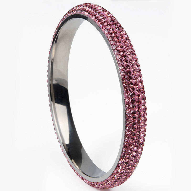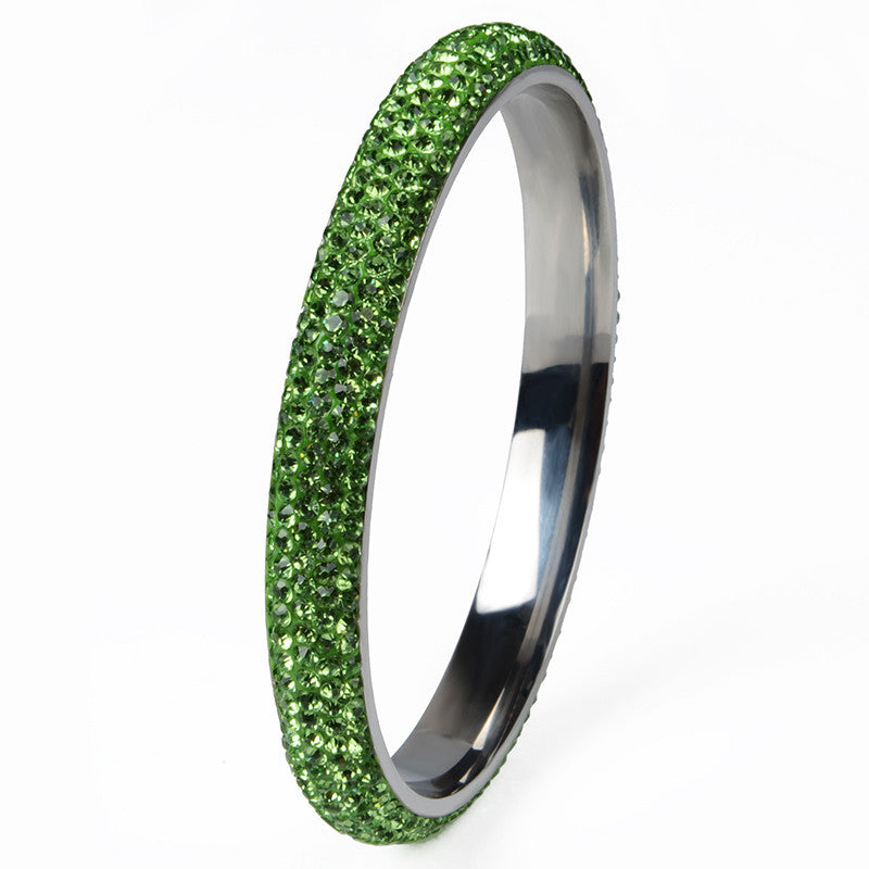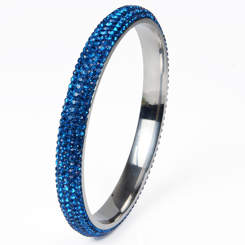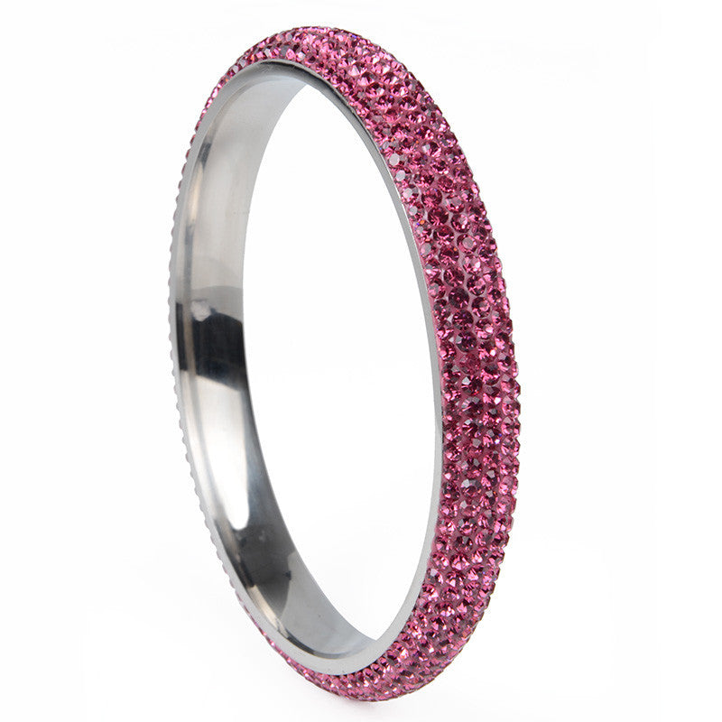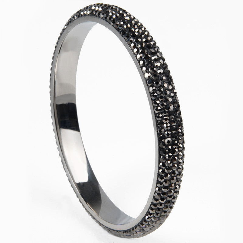 Rhodium plated crystal classic women bangles made of stainless steel and availaible in fashionable five rows.
