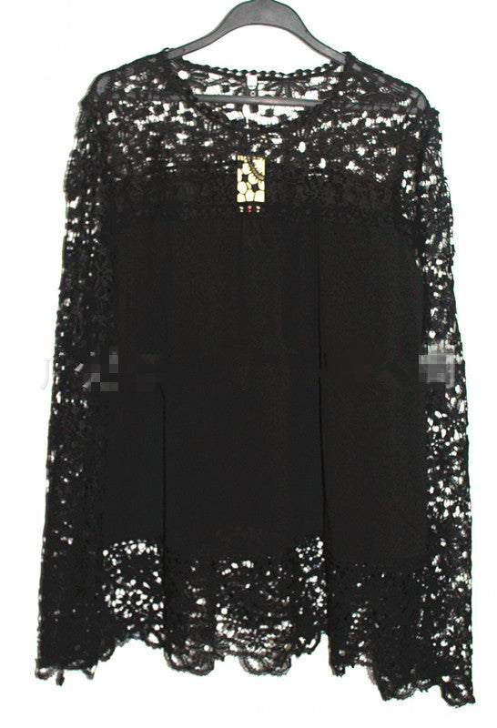 Elevate your fashion game with our 5XL large size Fashion Women Lace long Sleeve Chiffon Blouses Shirt Crochet. Order now and experience the perfect combination of elegance and comfort!