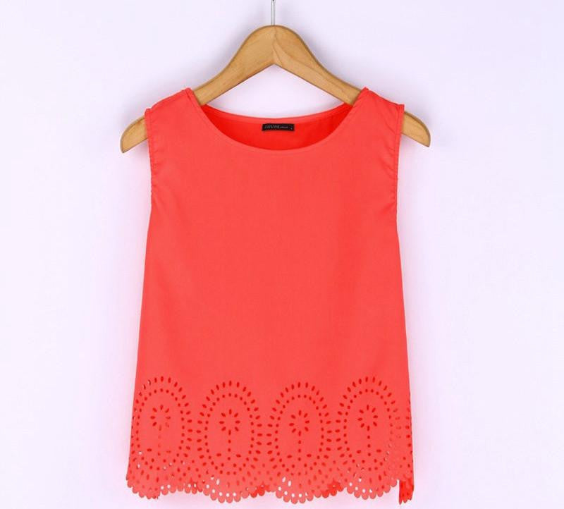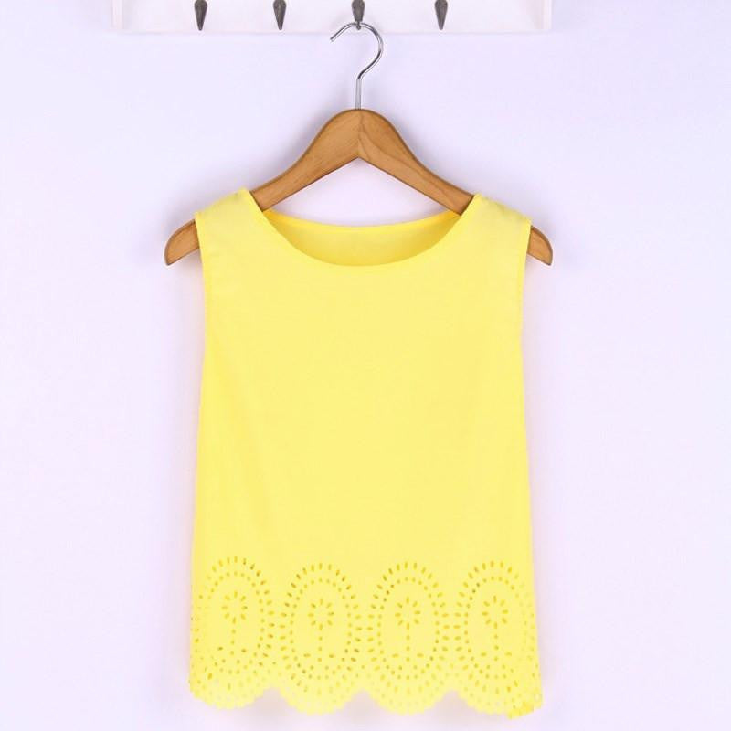 Pair the Style Women Cropped Top Chiffon Tank Sleeveless Hollow Out Plus Size Casual with high-waisted shorts for a trendy summer look or layer it under a blazer for a chic office ensemble. This versatile piece will quickly become one of your go-to favorites!