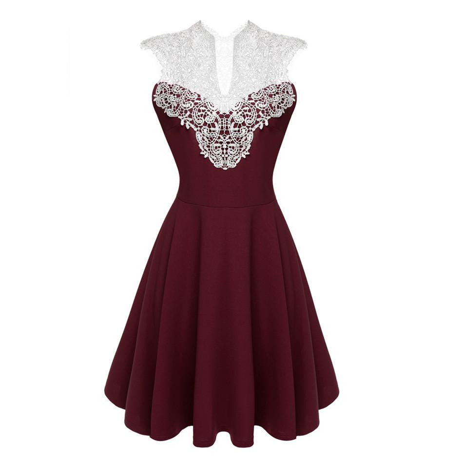 Embrace the essence of summer elegance with our Women Summer Lace Dress Lady Sleeveless Lace Patchwork High Waist Pleated Casual Knee Length Dress. This stunning piece effortlessly blends comfort and style, making it the perfect addition to your warm-weather wardrobe. Designed with a flattering A-line silhouette and a high waist, this dress accentuates your figure while providing ultimate comfort during those sunny days.