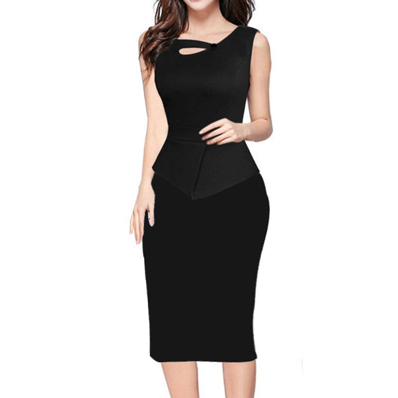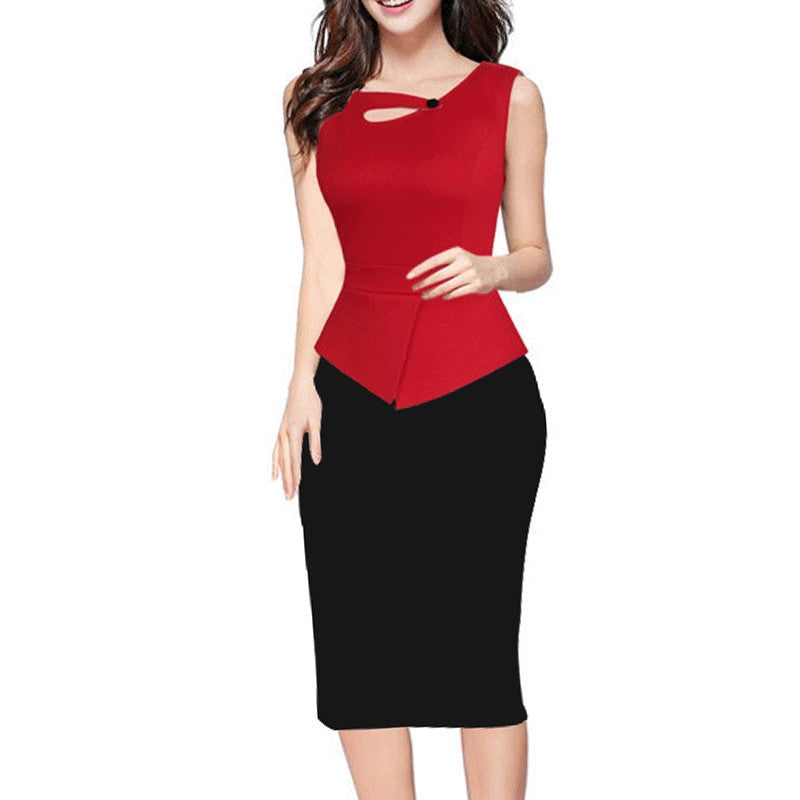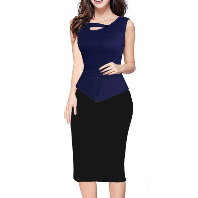 This elegant printed bottom solid top dress perfect. With sleeveless beautiful patchwork this spandex polyester pencil dress perfect.