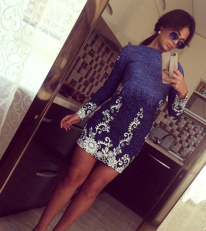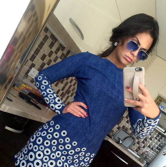 Now...this is a great design!! Get this beautiful solid top dress with a full length sleeve. This dress comes with a printed bottom mid thigh length. Perfect for office parties birthdays any party events look stunning in this.