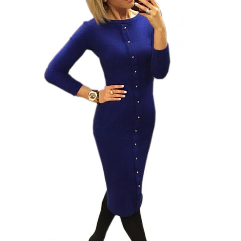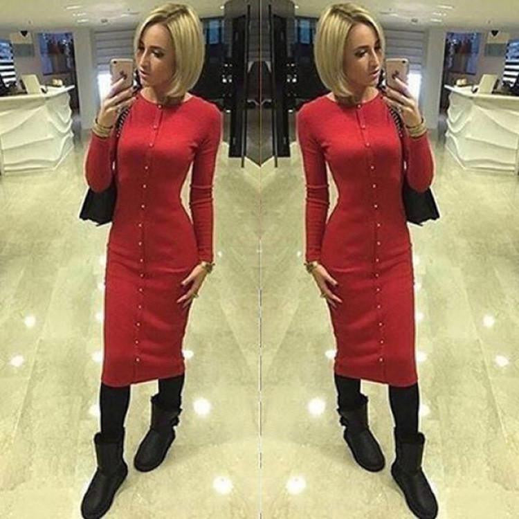 The Warm Women Knitted Mid-calf O-neck Dresses package hip Sheath Bodycon Dress With Buttons LX062 is not just a dress; it’s a statement piece that empowers you to feel confident and stylish. This autumn, make a bold choice and elevate your wardrobe with a dress that seamlessly combines comfort and chic design.