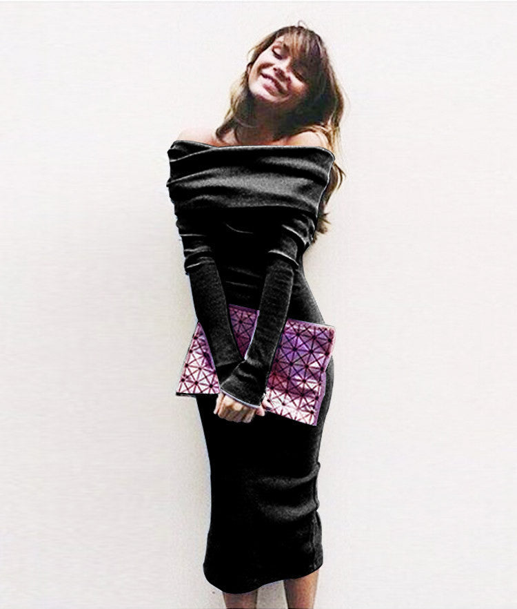 Welcome Autumn and Winter in this stylish piece, This mid calf, hollow out, slash neck dress, This stunning dress is the perfect evening dress for dinners or any social events.