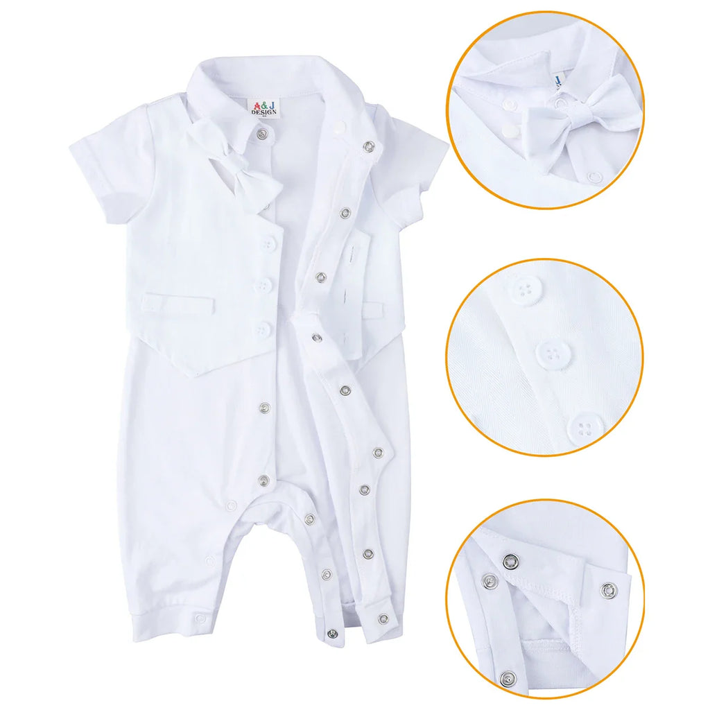 This Baby Boys Christening Romper Newborn White One-Pieces Short Sleeve Summer Clothes Baptism Gift with Hat + Shoes + Socks 4PCS makes for an unforgettable gift that parents will cherish. Make your baby’s special day memorable and stylish with this complete outfit that is as functional as it is fashionable.