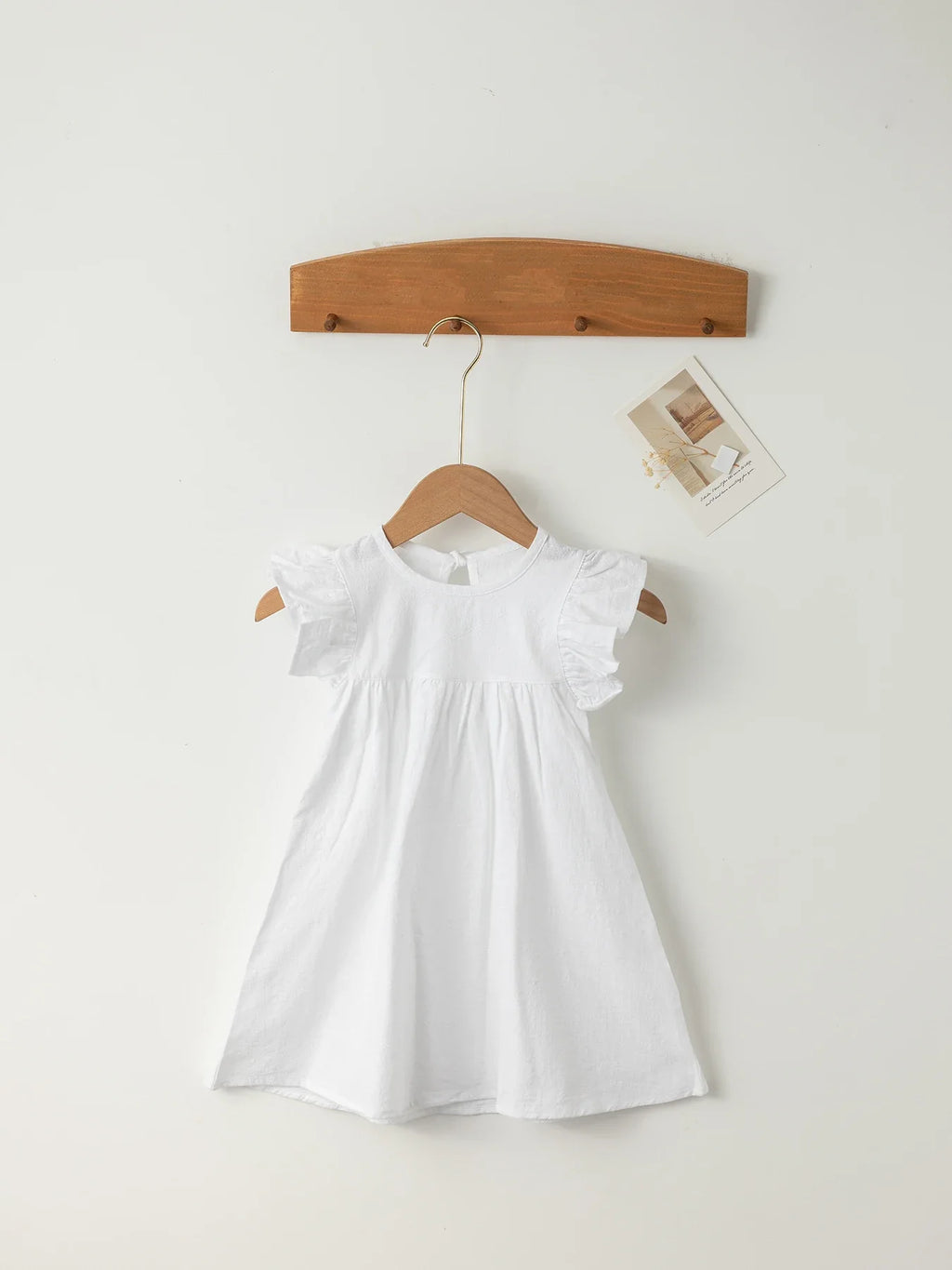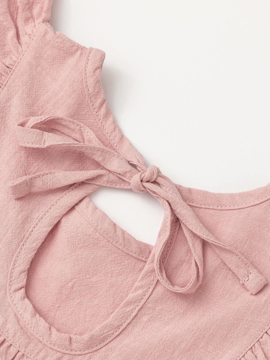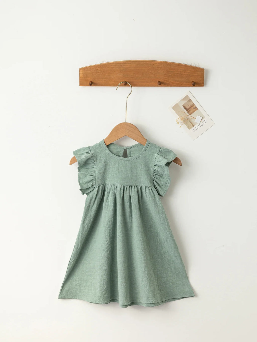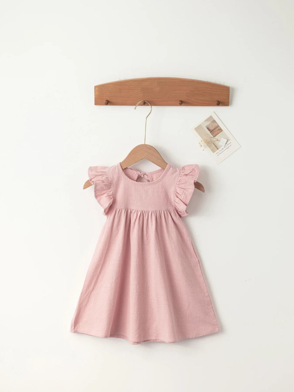Introduce your little princess to style and comfort with our Baby Girls Flying Sleeve Dress Tie-back Overall Dress Cotton Kids Casual. Crafted from high-quality, soft cotton, this delightful dress is designed for all-day wear, allowing your child to enjoy their playtime while looking adorable!