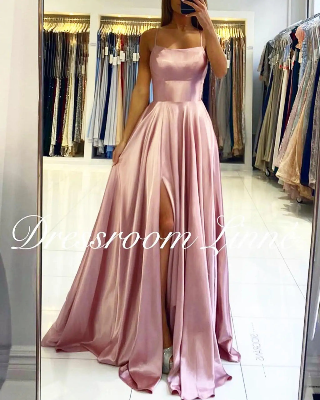 Indulge in the exquisite charm of our Soft Silky Satin Bridesmaid Gown Cowl Neckline Thin Straps Leg Slit and Flowing A-line Skirt Women, designed to make every bridesmaid feel like a queen. This gown features a stunning cowl neckline and delicate thin straps that enhance the feminine silhouette, offering the perfect blend of elegance and comfort. The subtle leg slit adds a hint of allure, allowing for graceful movement as you celebrate love and joy on that special day.
