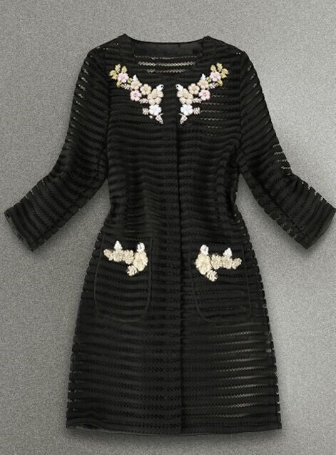 Introducing the Hollow Out Outerwear Coats For Women Fashion Stereo Flower Ladies Long Basic Jackets, an essential addition to your wardrobe this season. Designed for the modern woman, these jackets combine style and comfort seamlessly, ensuring you look fabulous while staying cozy. Featuring a unique hollow-out design and stunning floral appliques, this outerwear piece is perfect for elevating any outfit.