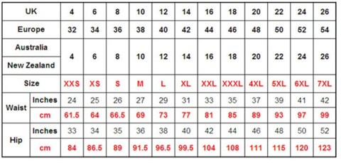 Size : XXS XS S M L XL XXL XXXL 3XL 4XL 5XL 6XL 7XL Plus Large Big UK Size