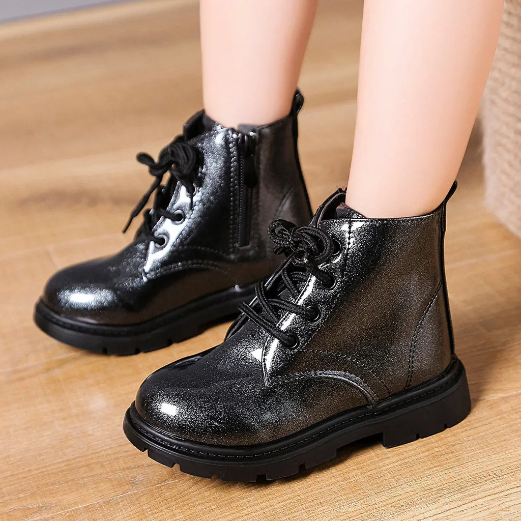 Discover the perfect blend of style and comfort with our Boys Ankle Boots Children's Sneakers Girls' Shoes Fashion Lacquer Leather Short Boots Kids Shoes. Crafted from high-quality lacquer leather, these boots are designed to withstand the wear and tear of active play while providing the necessary support your child needs for every adventure.
