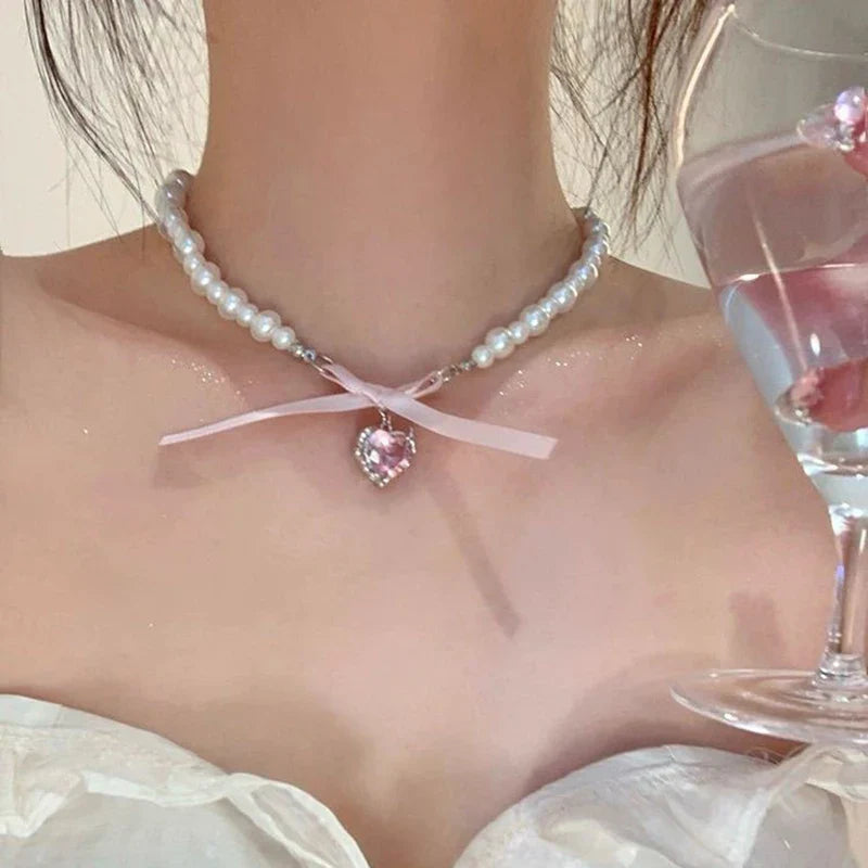 Introducing the exquisite Bow Love Cross Imitation Pearl Pendant Necklace for Women French Romantic Sweet Lolita Clavicle Chain Harajuku Fashion Jewelry, a stunning accessory designed to elevate your style and showcase your unique personality. This enchanting piece is perfect for anyone who adores the charming aesthetics of the Sweet Lolita fashion scene and Harajuku style. Its delicate clavicle chain gracefully highlights your neckline, adding a touch of elegance that makes it suitable for both casual outings and special occasions.