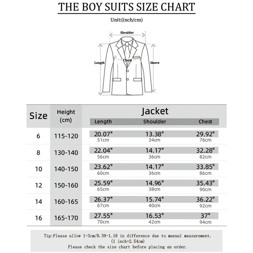 Dress your little one in the Boys Blazer Kids Wedding Formal Solid Jacket Gentleman Birthday Party Performance Suit Children Spring and Autumn Clothing Set for an unforgettable look at any special event. This stylish blazer is crafted from smooth, high-quality fabric, ensuring comfort and elegance for your child during weddings, birthday parties, or performance events. Its classic fit enhances your child's charm, making them the center of attention wherever they go.