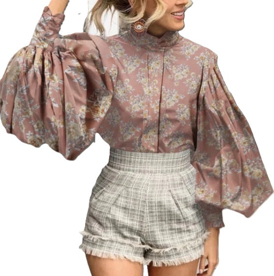 Elevate your wardrobe with this must-have tunic top that blends elegance with casual charm. Experience the perfect synergy of style and function with the Women Big Lantern Sleeve Blouse Elegant Party Shirts Stand Collar Casual Solid Retro Top Tunic Blusas.