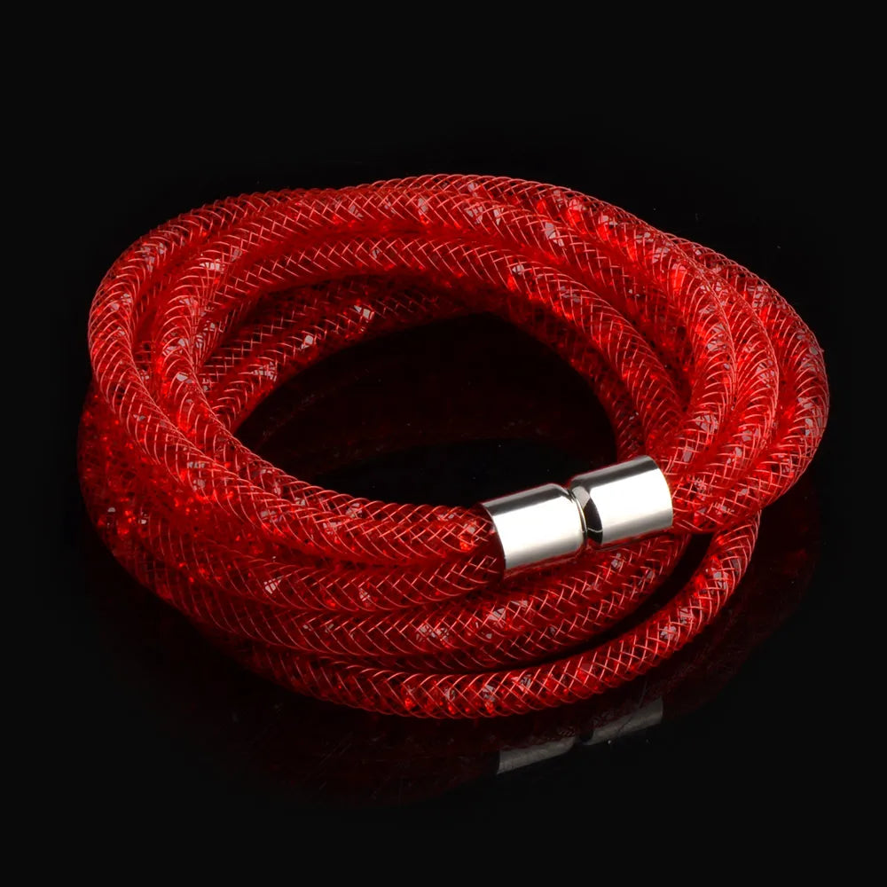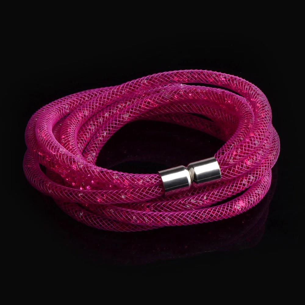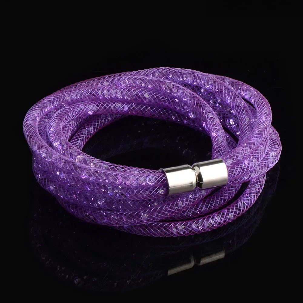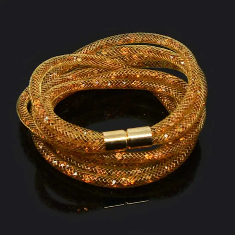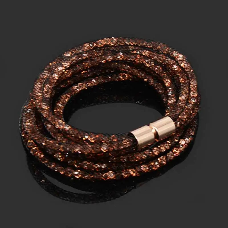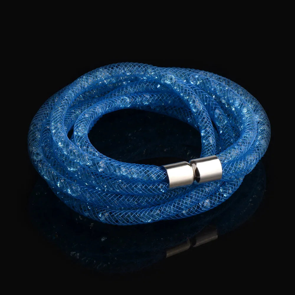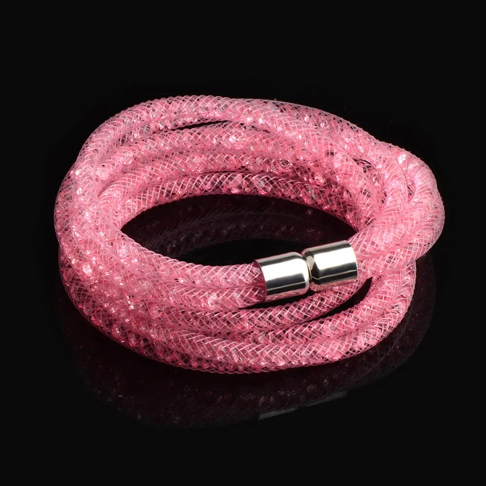 Indulge in the stunning beauty and elegance of our 4 Layers Mesh Magnetic Clasp Double Wrap Crystal Bracelet. The mesmerizing crystal detailing and convenient magnetic clasp make it the perfect accessory for any occasion. Elevate your style with this versatile and eye-catching bracelet!
