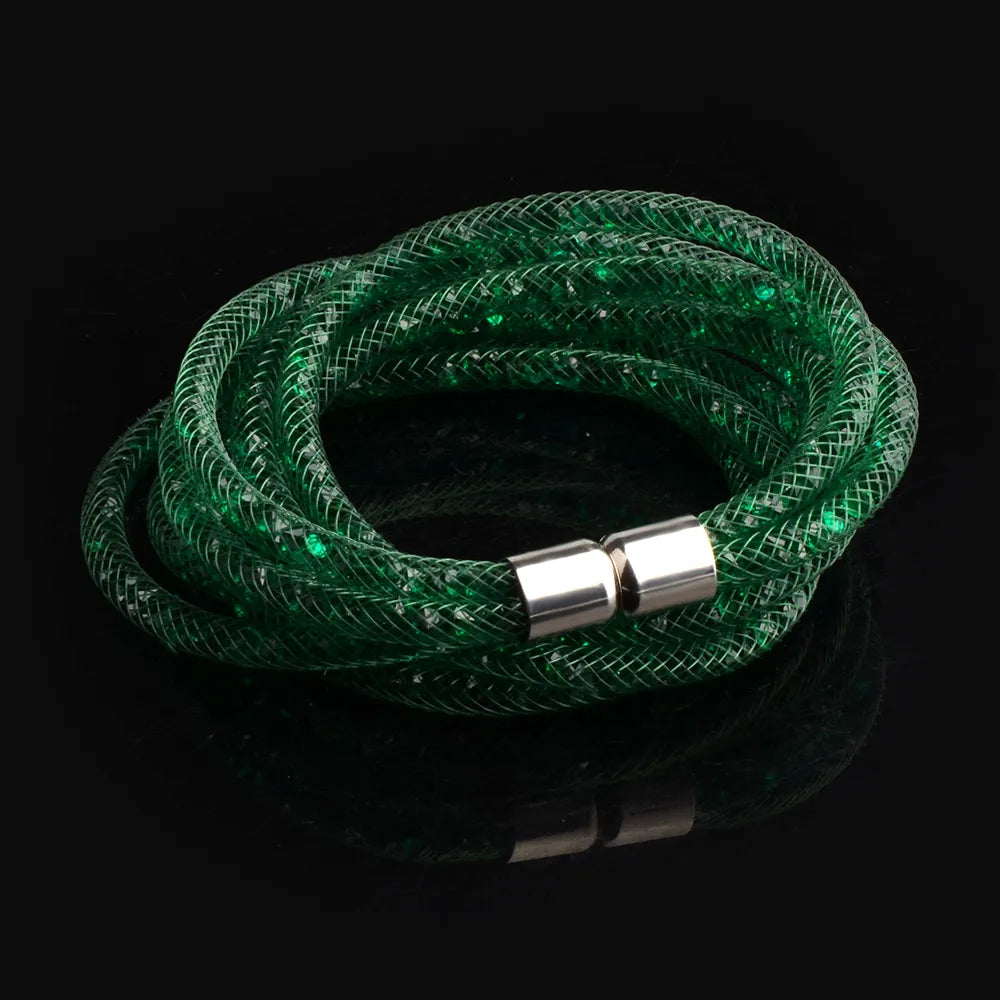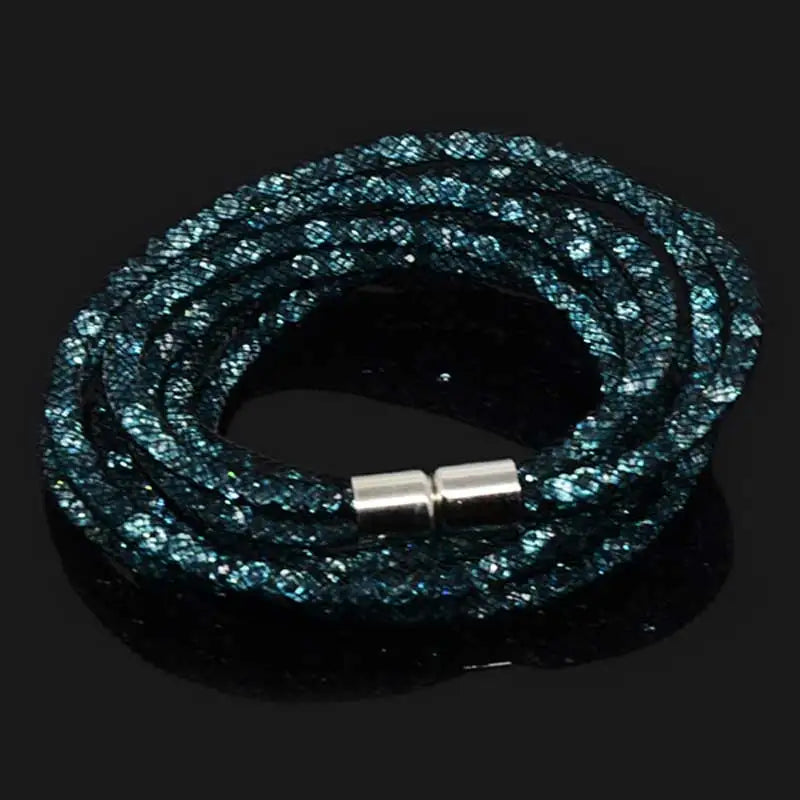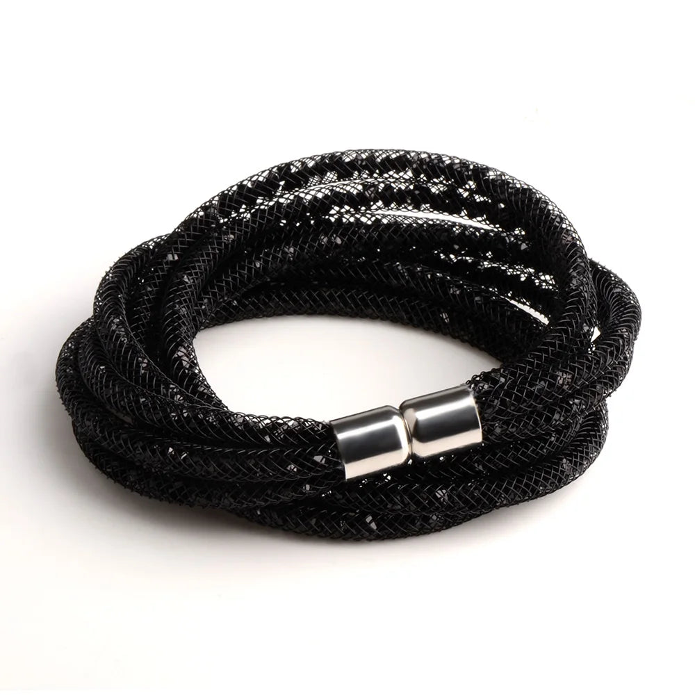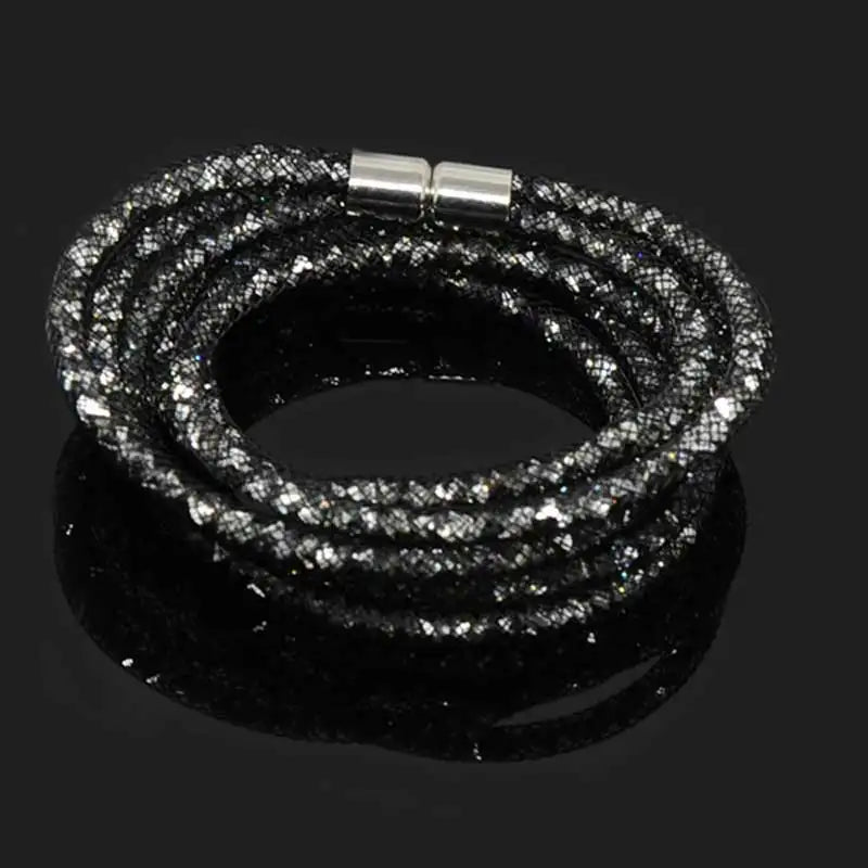 Discover the exquisite charm of the 4 Layers Mesh Magnetic Clasp Double Wrap Crystal Bracelet, an essential addition to your jewelry collection. This stunning bracelet showcases a captivating design featuring multiple layers of mesh interwoven with sparkling crystals, making it an ideal accessory for both casual outings and formal events.