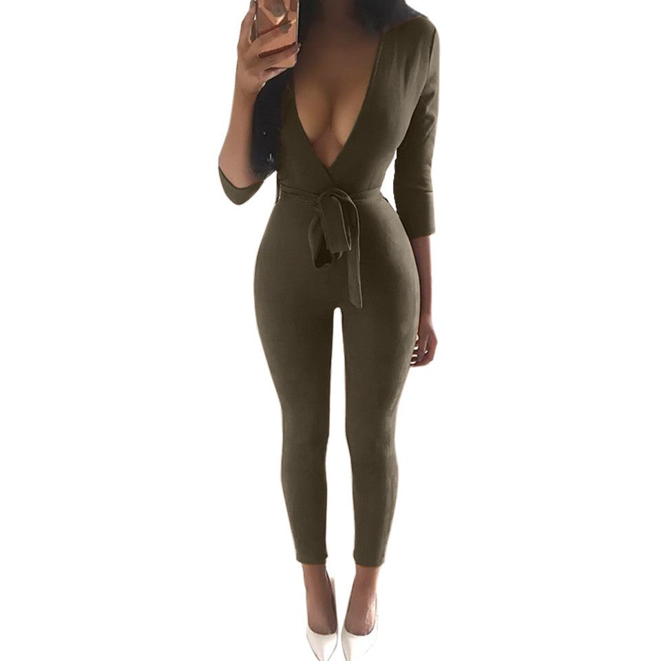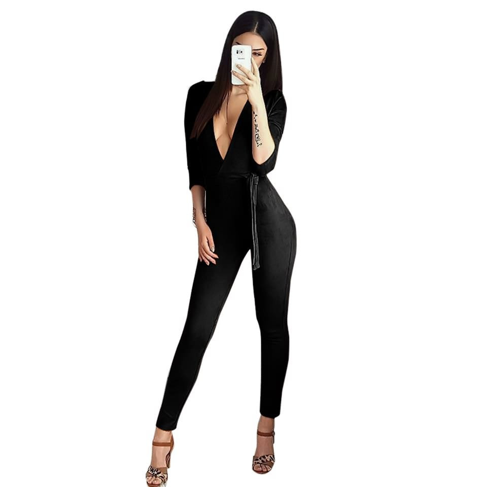 Step into the spotlight with our Deep V sexy backless pencil pants / feet pants nightclub Cashmere Suede Leather One Pieces Jumpsuit Women Rompers. Designed for the daring woman, this stylish jumpsuit showcases a striking deep V cut that accentuates your neckline and a backless design that adds an extra touch of allure. Perfect for nights out at the club or special events, this one-piece is the ultimate addition to your wardrobe.