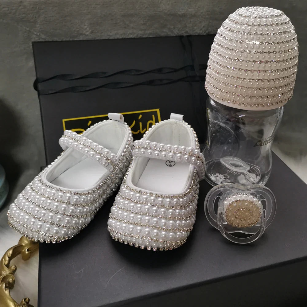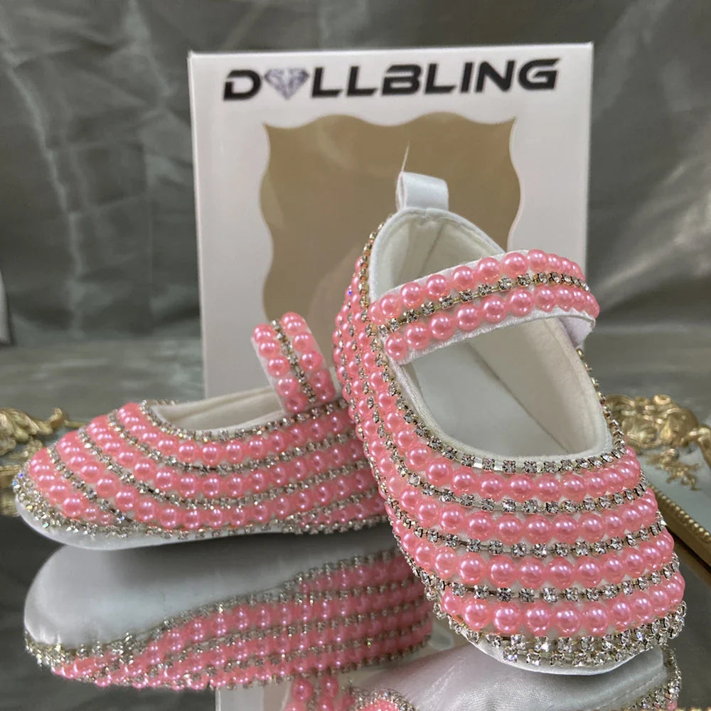Not only do these Handmade White Pearls Bling Rhinestone Baby Crib Shoes enhance your baby's outfit, but they also ensure comfort and safety during wear. The soft cotton outsole prevents slipping, while the gorgeous rhinestone embellishments make them a show-stopping accessory for any occasion. Your baby deserves to look their best, and with these crib shoes, they will be the center of attention!