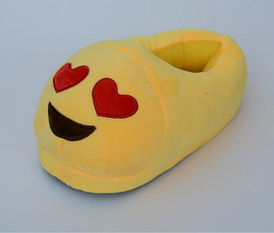 Plush house slippers made with cotton designed with full emoji faces so