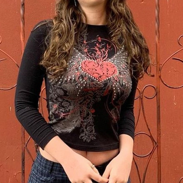 Enhance your wardrobe with our E-girl Graphic Print T-shirt 2000s Retro Y2K Fairy Grunge Autumn Spring Crop Top Women Tee Shirt Female Harajuku Streetwear. This stylish tee is the perfect blend of vintage charm and modern flair, designed for fashion-forward women who embrace the eclectic styles of the early 2000s. Made from lightweight polyester, it ensures comfort throughout the seasons of spring and autumn, making it a versatile piece for your collection.