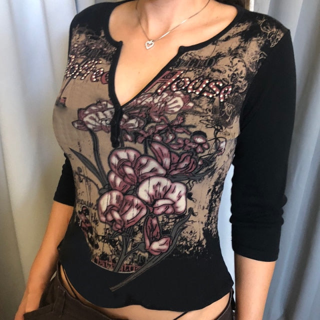 The E-girl Graphic Print T-shirt features a comfortable O-neck collar and full sleeves, ensuring you stay stylish while feeling cozy. With no additional decorations, its minimalist yet impactful design allows for versatile styling options. Embrace the nostalgia of the Y2K era and make a bold statement with this essential piece of Harajuku streetwear.