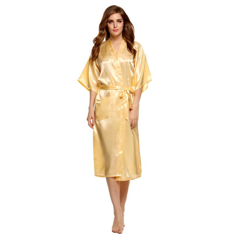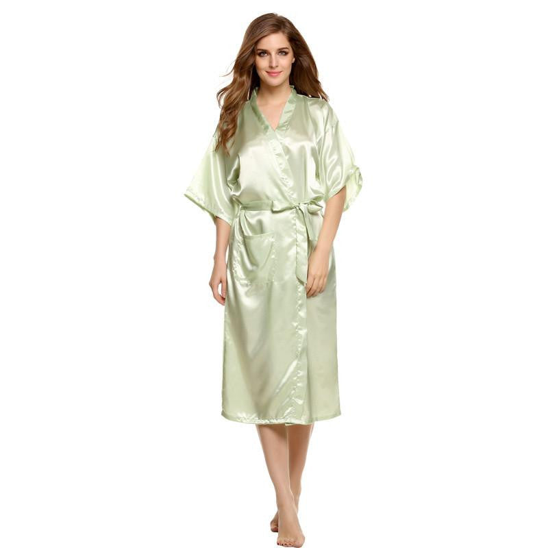Indulge in luxury with our stunning Women Nightwear Robes Sleepwear Long Night Dress Gown Robe with Belt Silk Pajamas. Crafted from high-quality faux silk and polyester, this elegant nightwear is designed to elevate your nighttime routine. With its knee-length cut and exquisite satin fabric, you will feel both comfortable and chic, whether lounging at home or unwinding after a long day.