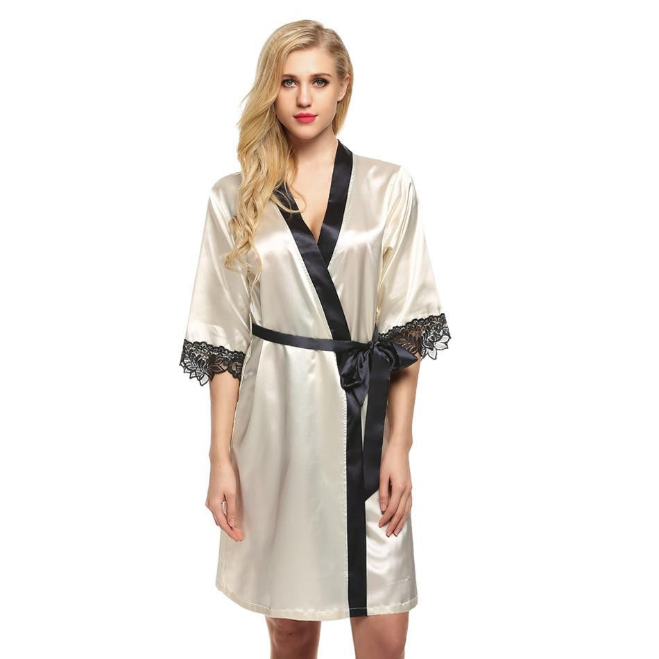 This Women's Robe Knee Length Lingerie Sleepwear Short Satin Lace Nightwear Bridesmaid Robes XS-XL combines practicality with luxury, making it a must-have addition to your wardrobe. Its solid pattern and soft fabric composition ensure you remain comfortable while looking chic. This robe is not just a piece of clothing; it’s an experience in comfort and style that enhances your day-to-day life.