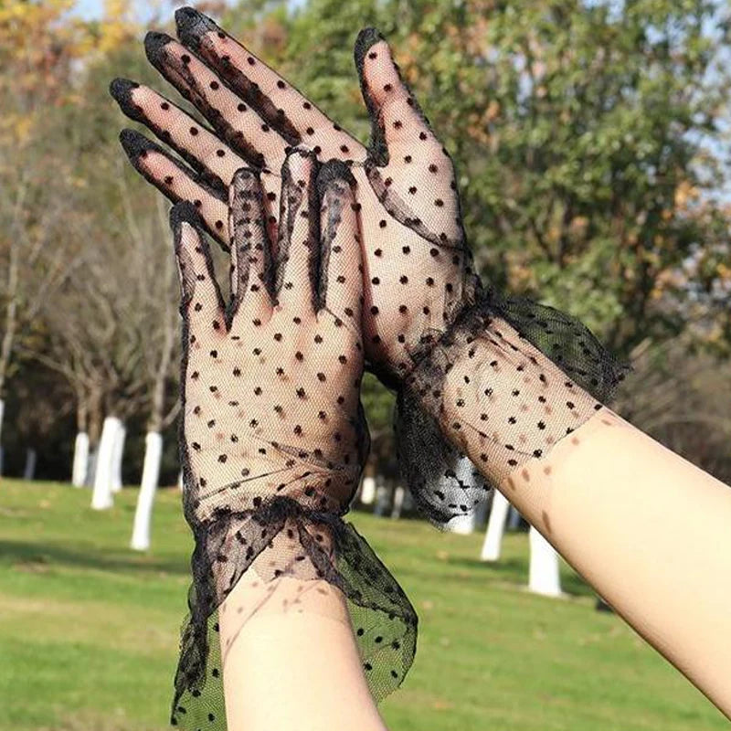 Elevate your bridal look with our Elegant Wedding Bridal Gloves Soft Tulle Dots Ruffle Short Lace Gloves Bridesmaid Gloves Party Mittens Wedding Accessories. These exquisite gloves are designed to add a touch of elegance and charm to your special day. Crafted from soft tulle and adorned with delicate lace ruffles, they bring a romantic flair that every bride and bridesmaid will adore.