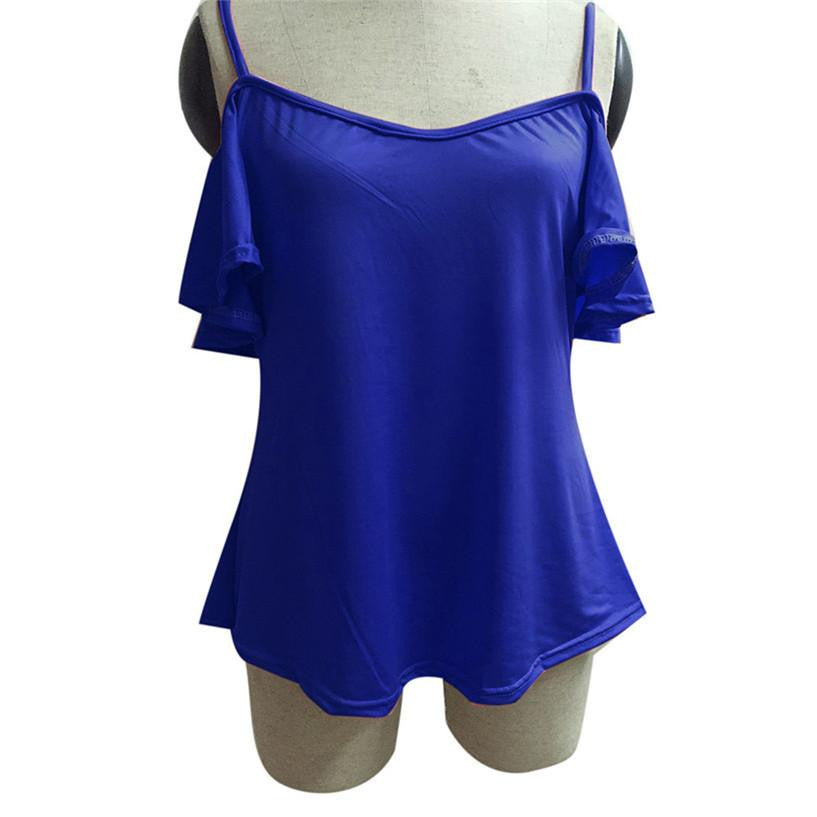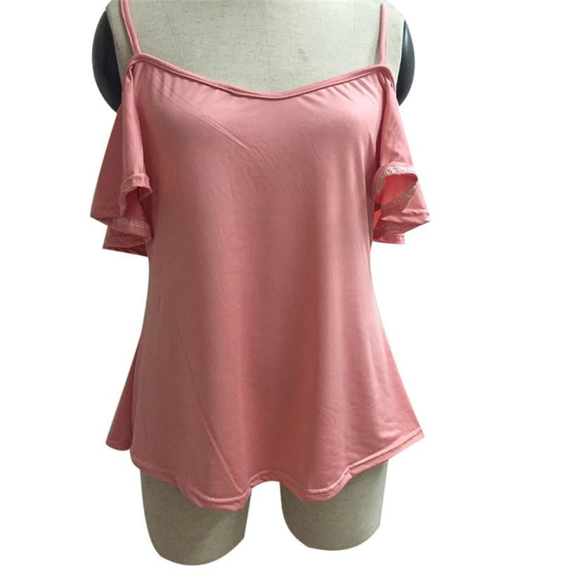 The off-the-shoulder design adds a touch of elegance, making it a versatile choice for any occasion. The solid pattern ensures that it can be easily paired with your favorite jeans, shorts, or skirts, making it a staple piece in your wardrobe.
