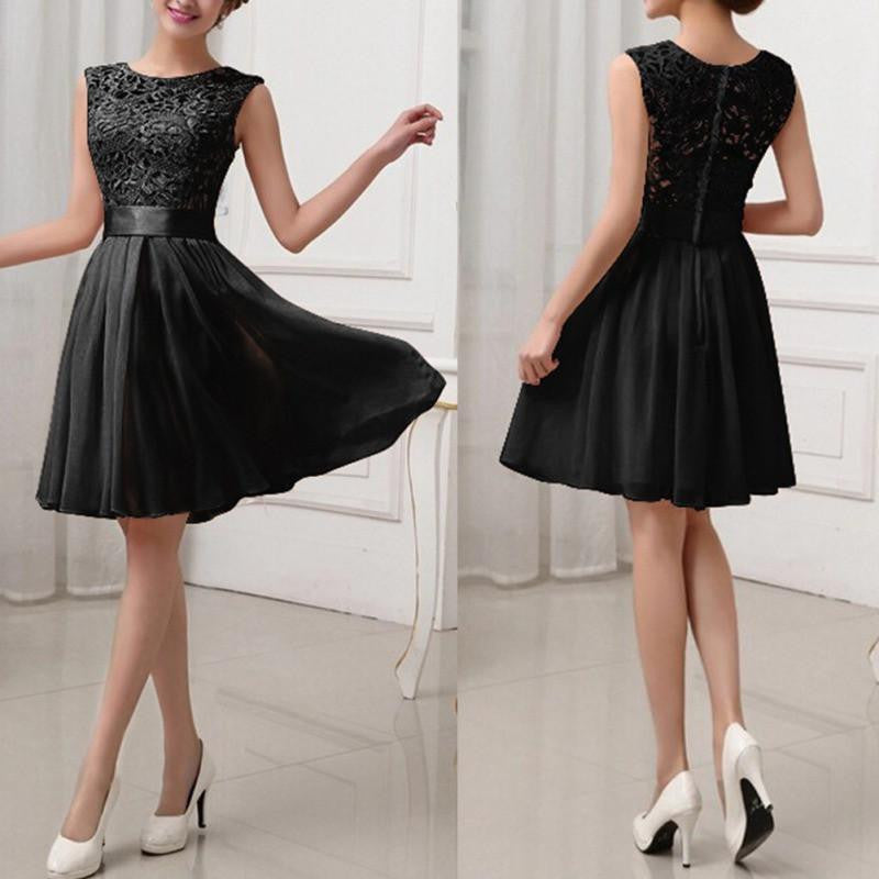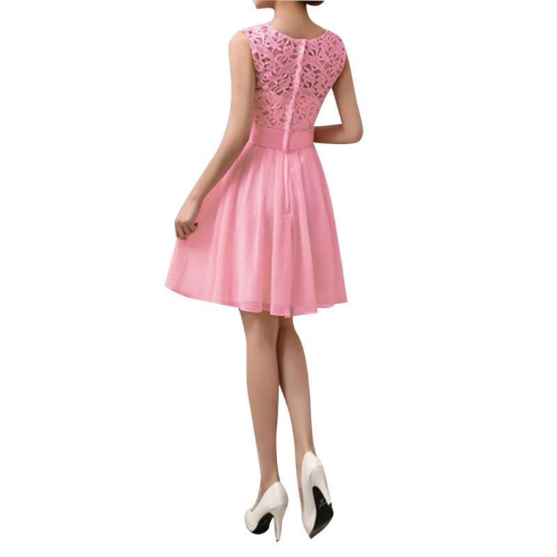 Contact us for more detailed sizing information and embrace the summer in style with the Women Lace Chiffon Dress Sleeveless O-neck Knee Length Solid Dress.