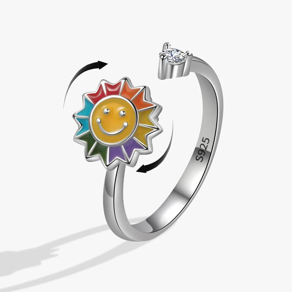 Keep your hands and mind busy with our fashionable butterfly sunflower rotating anti stress ring! Its spinning feature and crystal accents provide anxiety relief while also making a statement. A must-have accessory for women who appreciate both style and function.
