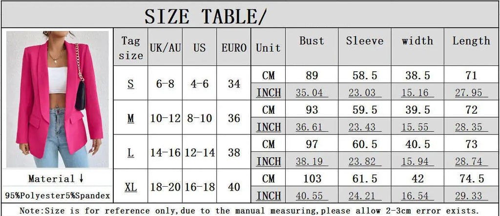 Whether you’re heading to the office, attending a meeting, or going out for a casual dinner, our Womens Jacket Cotton Non Stretch Long Sleeve Office Lady Blazers offers the perfect solution. Its solid color pattern pairs well with a variety of outfits, allowing you to mix and match effortlessly. Elevate your professional attire and express your unique style with this essential piece that transitions beautifully from day to night.