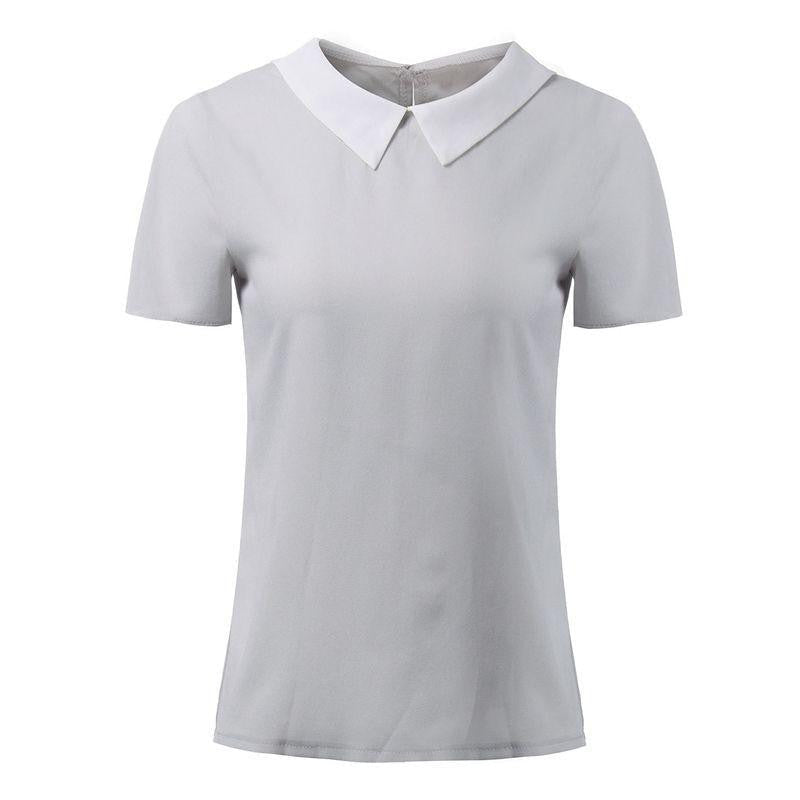 The turn down color casual shirt is chic. The beautiful chiffon short sleeve blouse is stylish and comfortable. Get the printed top and match with your favorite bottom.