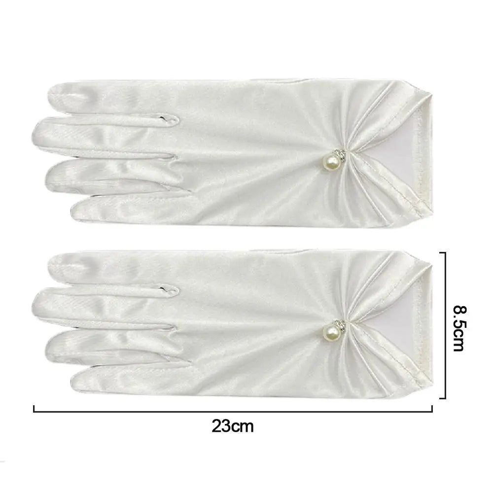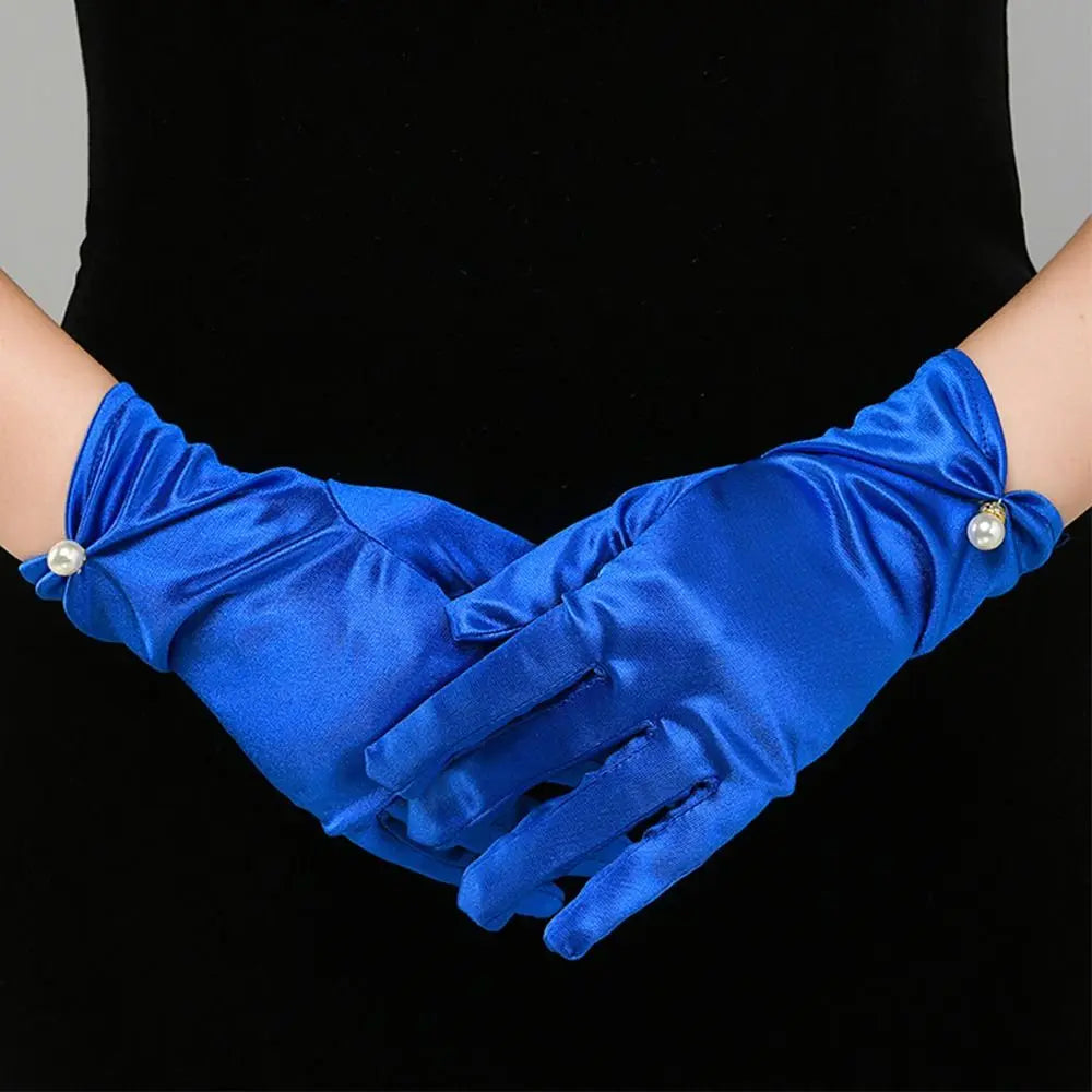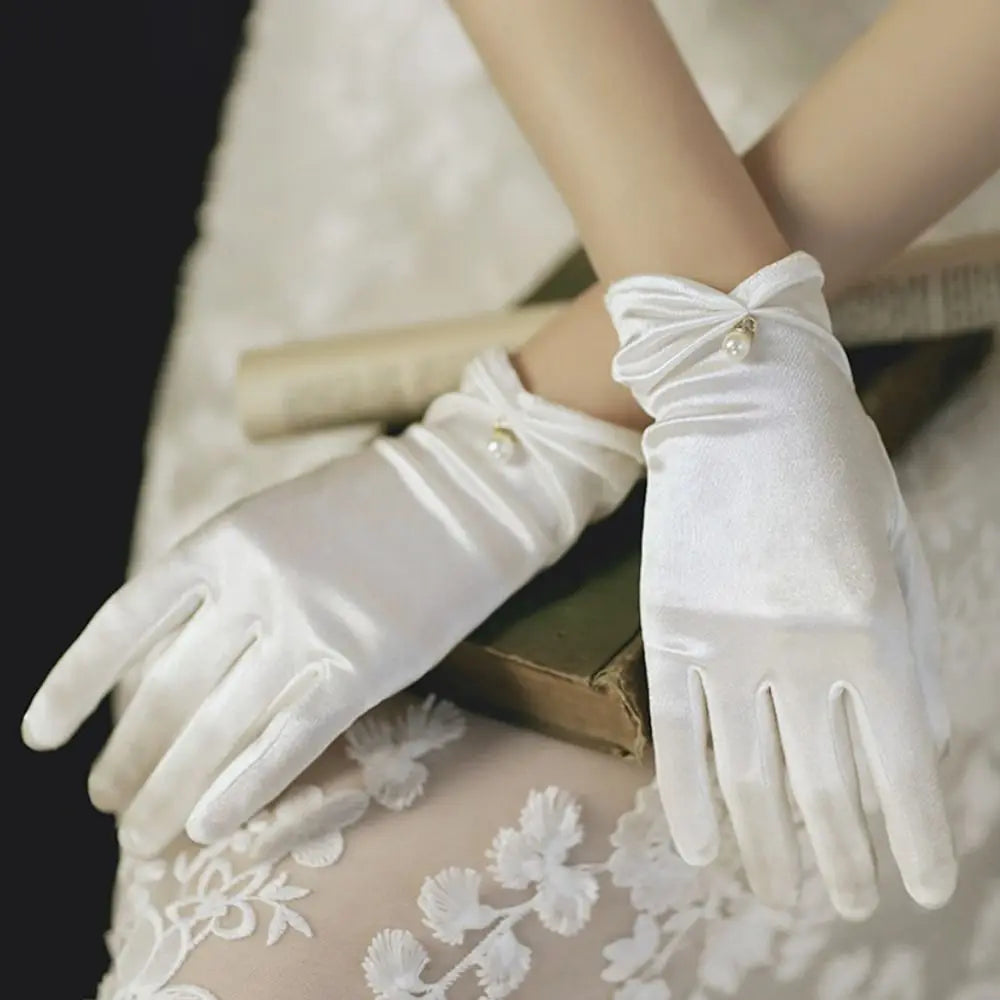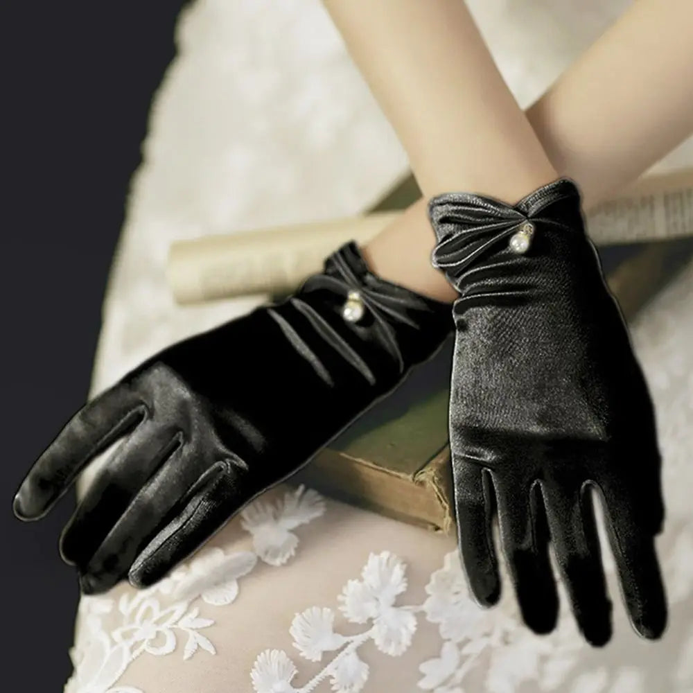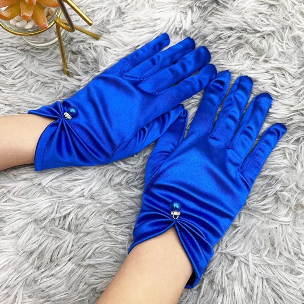 Introducing our Women Wrist Length Gloves Sexy Elegant Pearl Bowknot Short Satin Stretch Gloves for Ladies Girls Hand Gloves Sunscreen, designed to elevate your style while providing essential sun protection. These exquisite gloves are crafted from high-quality satin and feature a stretchable material that ensures a comfortable fit for all hand sizes. The stunning pearl bowknot detail adds a touch of charm, making them a perfect accessory for any occasion.