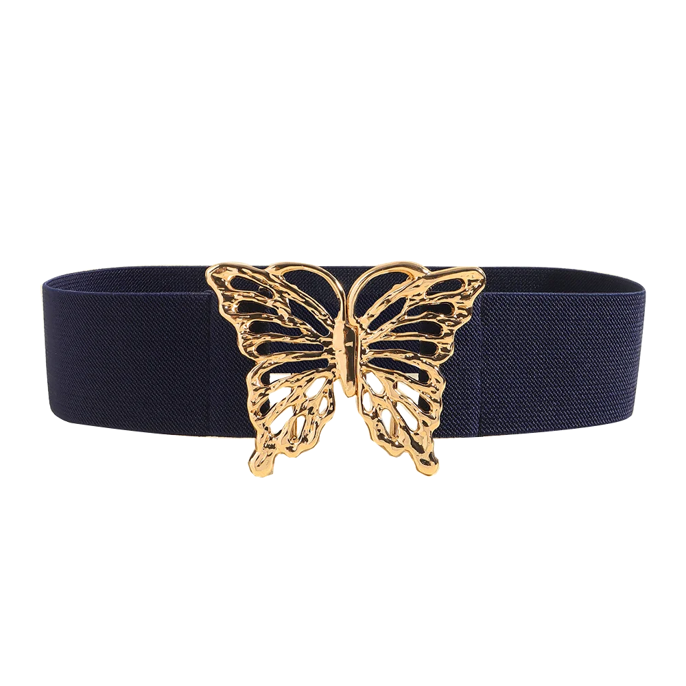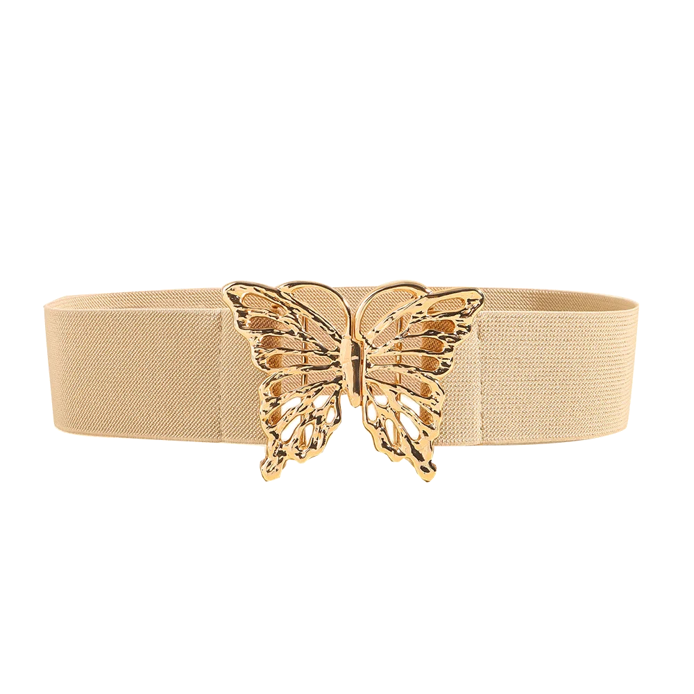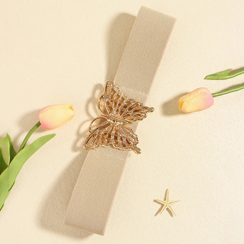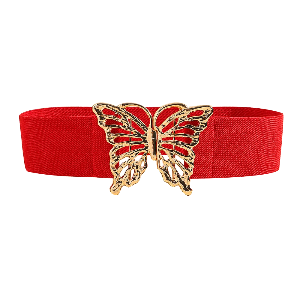 Get ready to flutter your fashion senses with our women's butterfly belt! Made with elastic to fit every waist size, this belt not only adds a decorative touch to any outfit, but also ensures a perfect fit. Say goodbye to bulky belts and hello to a stylish and comfortable accessory.