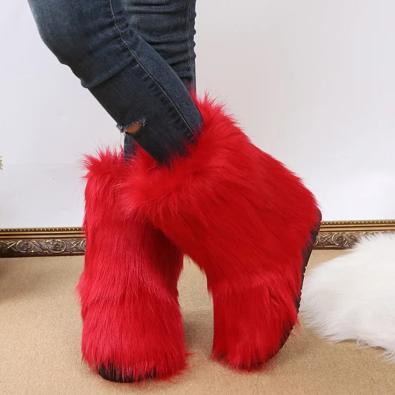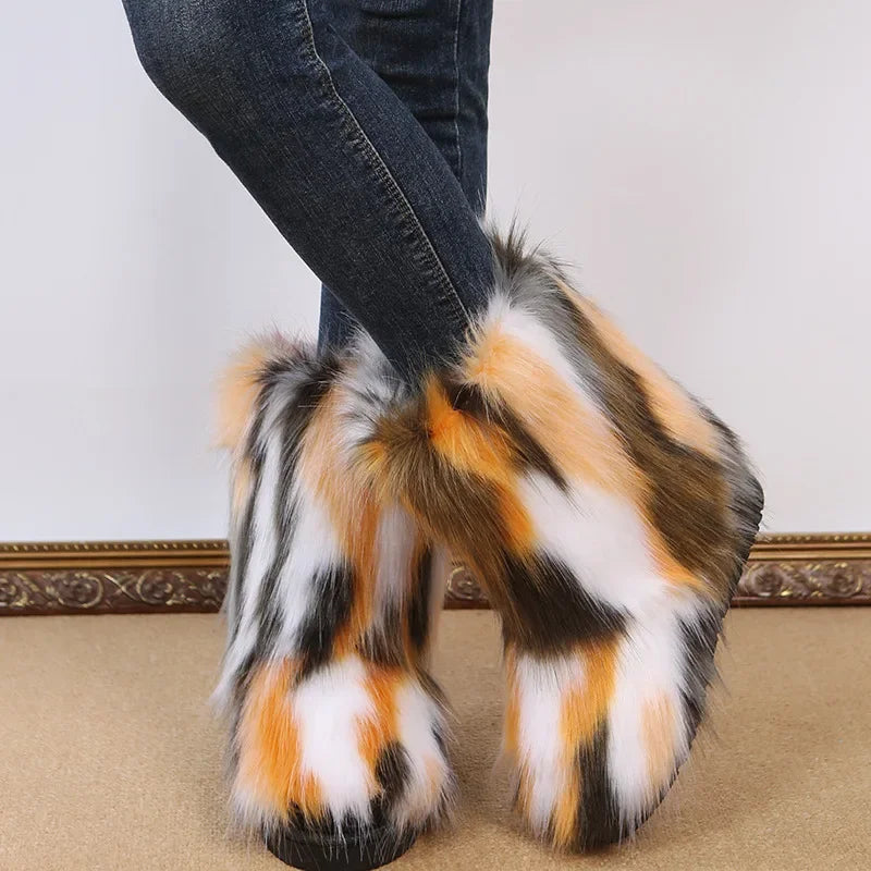 Upgrade your winter wardrobe with the Fashionable Colored Plush Snow Boots Women Winter New Fox Long Hair Comfortable Cotton Shoes Anti Slip Wear-resistant Flat Shoes today and embrace the cold without sacrificing style or comfort!