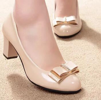 The perfect and comfy leather shoes for your comfortable out in afternoon walk. Pick your bow low-heeled with thick heel shoes for woman.
