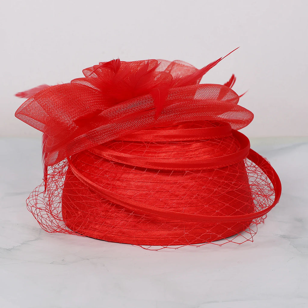 Put the finishing touch on your wedding look with this elegant Wedding Church Red Hats Fascinators. Featuring a feather veil and Kentucky Derby-inspired design, this playful hat adds charm to any cocktail party or event. Perfect for the quirky, fun-loving lady looking to make a statement.