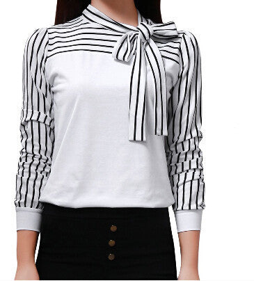 Elevate your wardrobe with the exquisite Lady Bow Neck Blouse Stripe Long Sleeve Shirts Casual Fall Tops. This stunning blouse seamlessly combines elegance and comfort, making it a perfect choice for any occasion. Crafted from high-quality chiffon, it features a stylish bow neck design that adds a touch of sophistication to your outfit. Whether you’re dressing for the office or a casual outing, this blouse is versatile enough to suit your style.