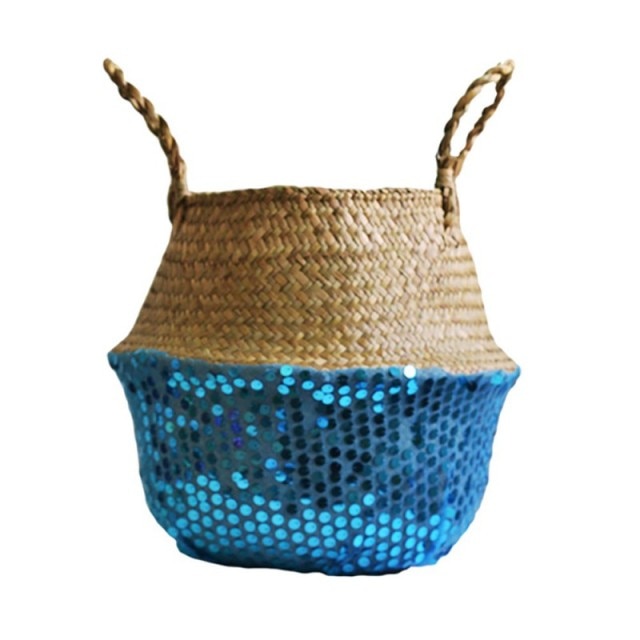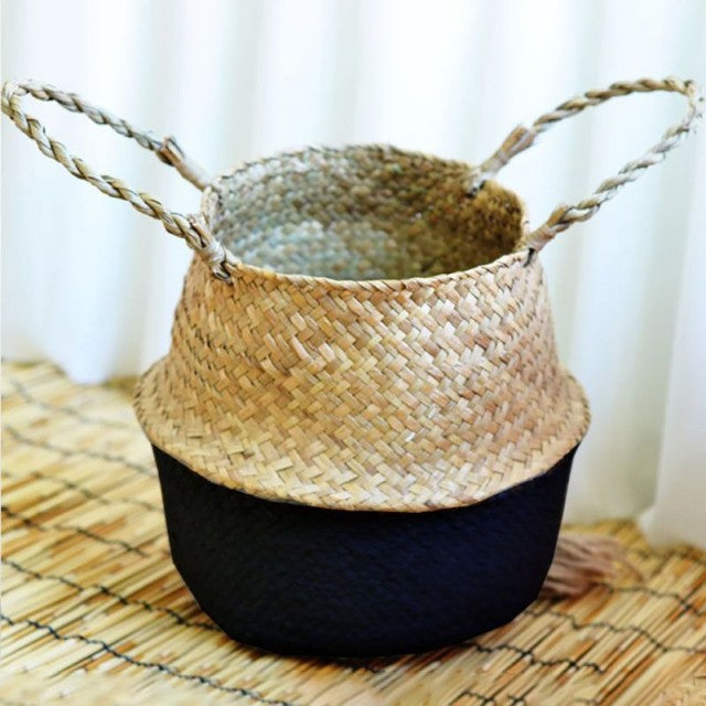 The Handmade Storage Basket Seagrass Wickerwork Flower Pot Plant Basket is foldable, allowing for easy storage when not in use. Its spacious interior is perfect for organizing laundry, toys, or gardening supplies, making it a practical choice for families and plant lovers alike.