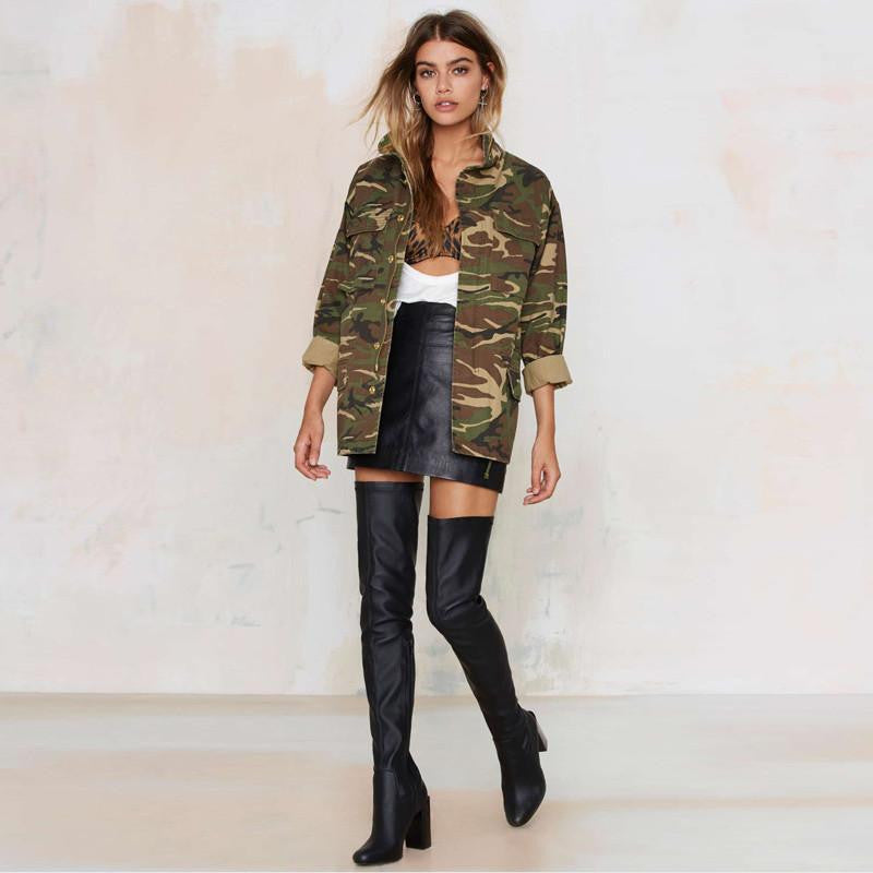 Elevate your outerwear collection with the Women Loose Camouflage Coat Stand Collar Pocket Long Sleeve Zipper Outwear Jacket. This stylish jacket is designed not only to keep you warm but also to enhance your fashion statement. The versatile camouflage print makes it a perfect choice for both casual outings and more adventurous endeavors. With its stand collar and full-length sleeves, this jacket ensures comfort without compromising on style.