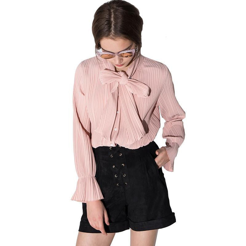 Don't miss out on adding this essential piece to your closet today. With its blend of fashion and functionality, the Womens Chiffon Bow Pleated Single-breasted Blouse Shirts Casual Flare Sleeve Overalls Tops Tees for is a must-have for every stylish woman.