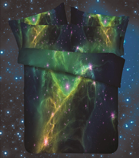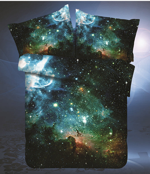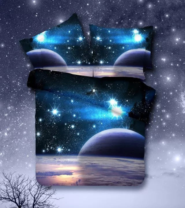 The galaxy 3D bedding set Universe outer space themed Galaxy Print Bedlinen Duvet cover and pillowcases. Available in Queen and twin size.