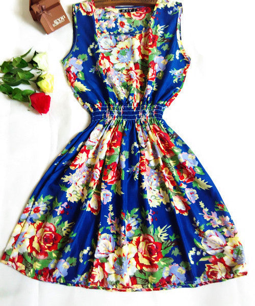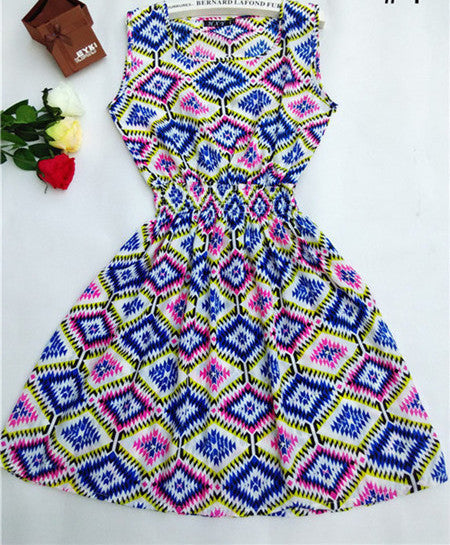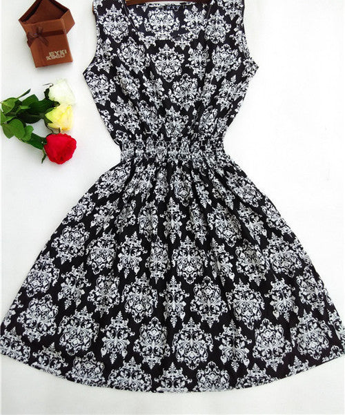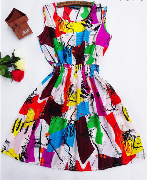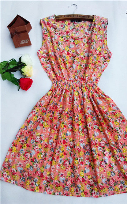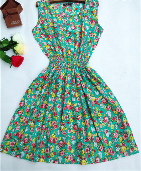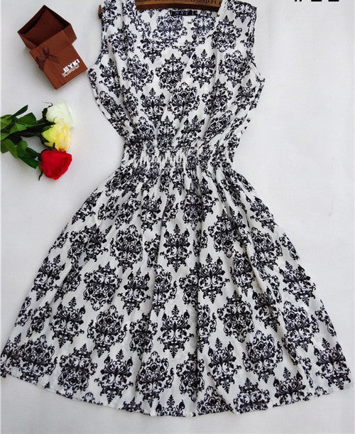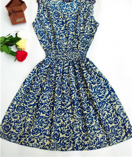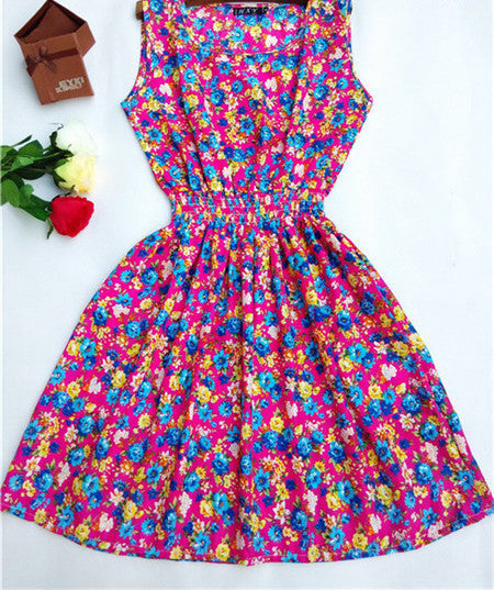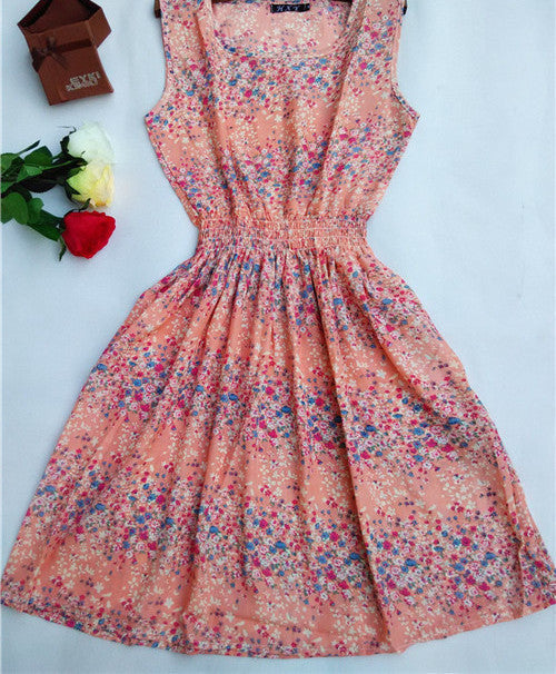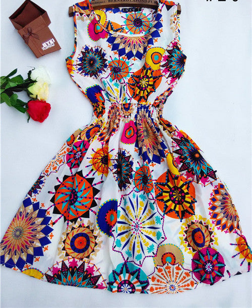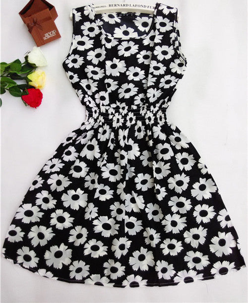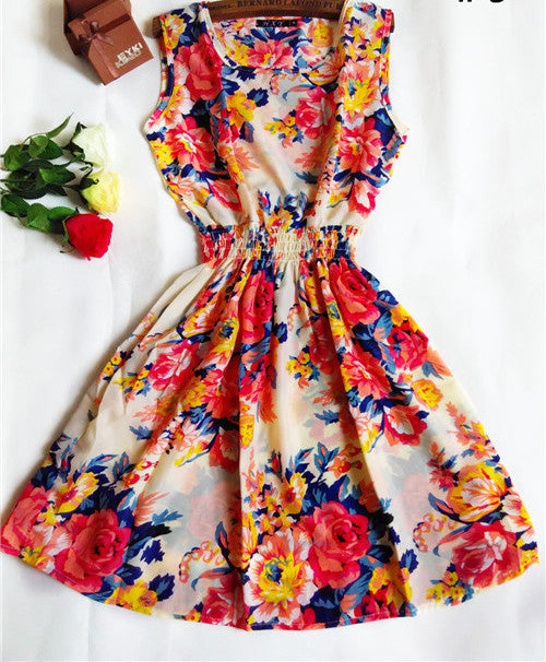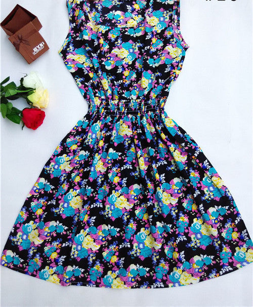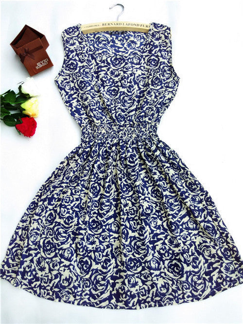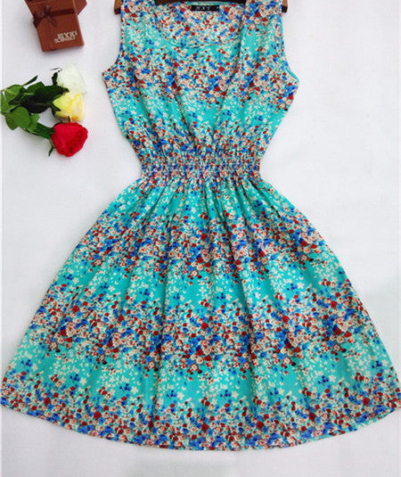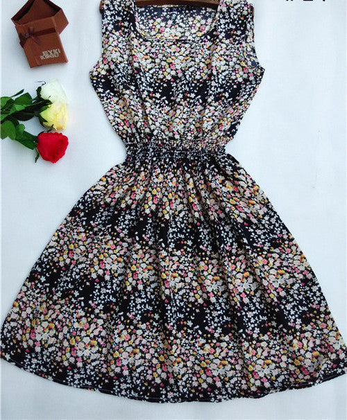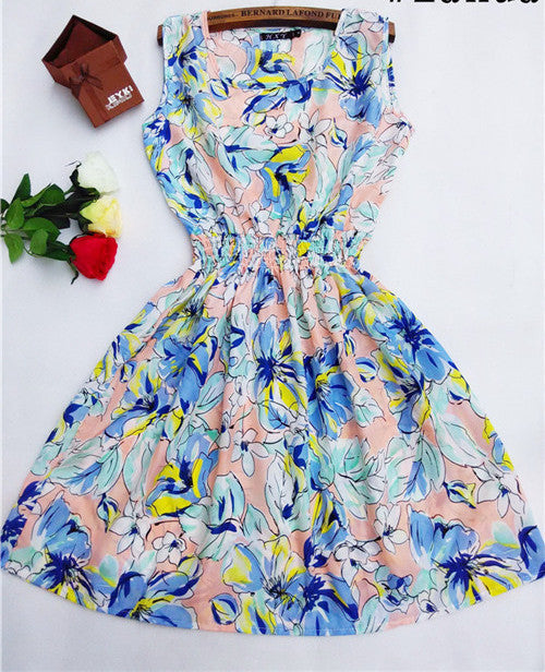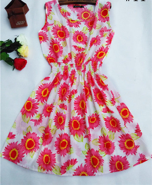 The Women casual Bohemian floral leopard sleeveless vest printed beach chiffon dress nz17 features: