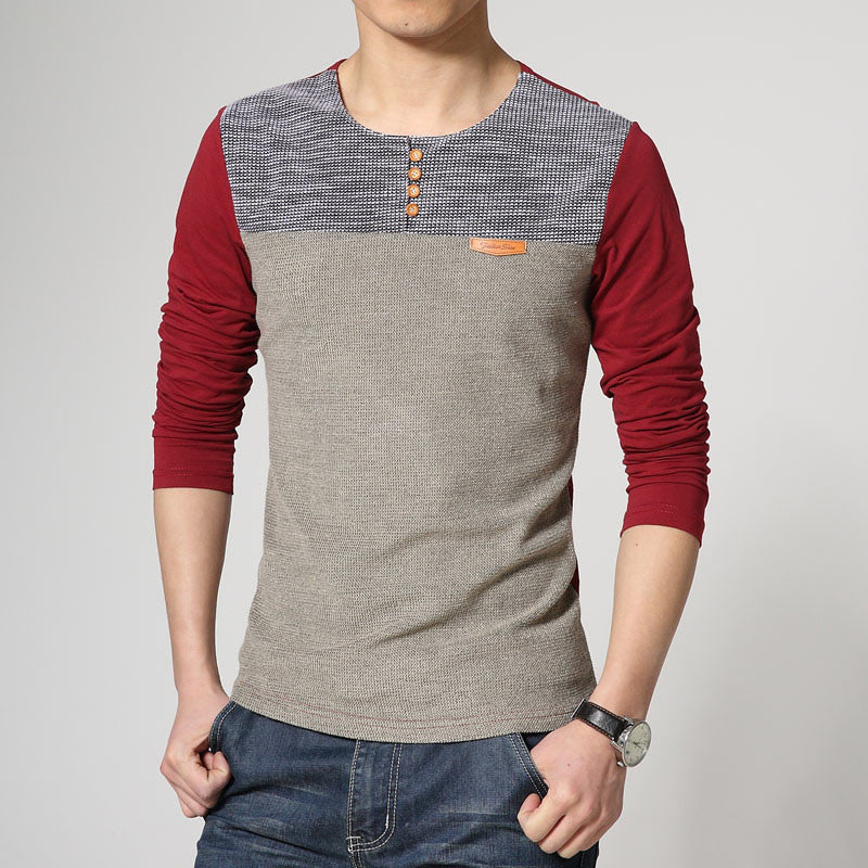 This fine dress made for slim men is a T-shirt with O-neck shape and a long sleeve length. A good choice in spring season for casual outings.