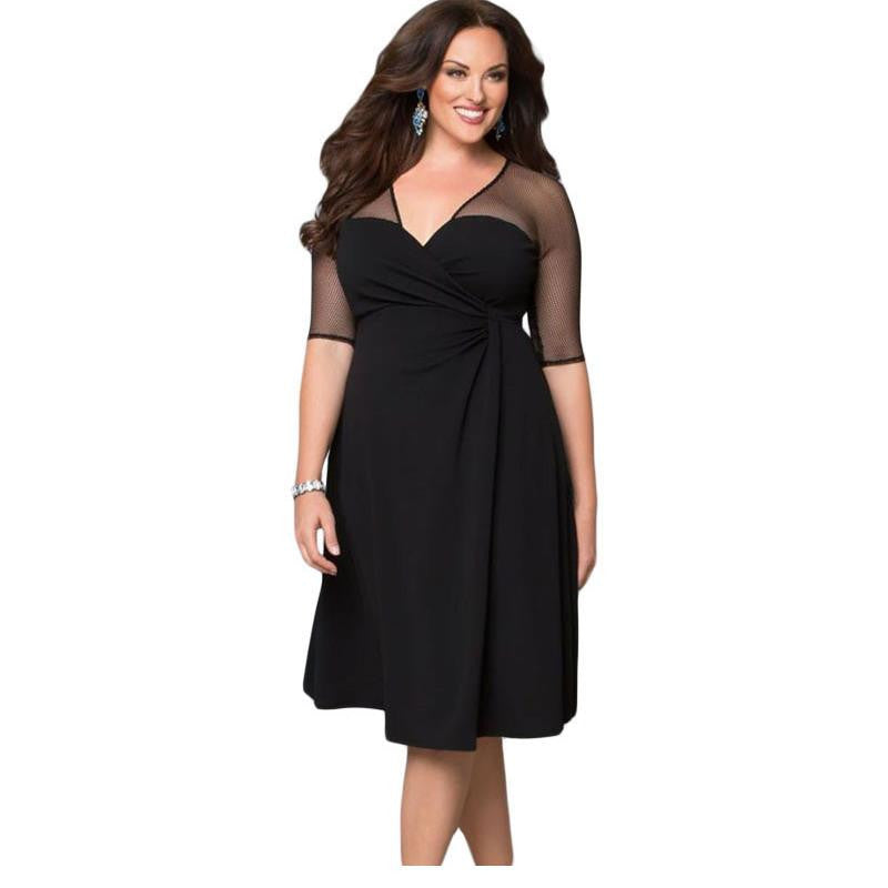 Get this hot black plus size short dress into yo closet, this chiffon top beautiful neckline dress is a great peace to have.