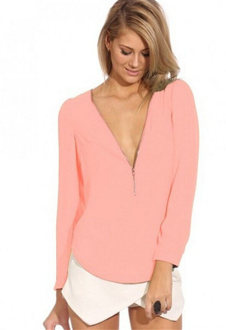 Elevate your wardrobe with our stunning Women Blouses Zip Shirt Casual Long Sleeve V-neck Solid Color Chiffon Blouse Female Blouse. Perfect for any occasion, this elegant blouse combines style and comfort, making it an essential piece for your fashion collection. Crafted from high-quality chiffon fabric, it offers a lightweight feel that drapes beautifully on any body type.