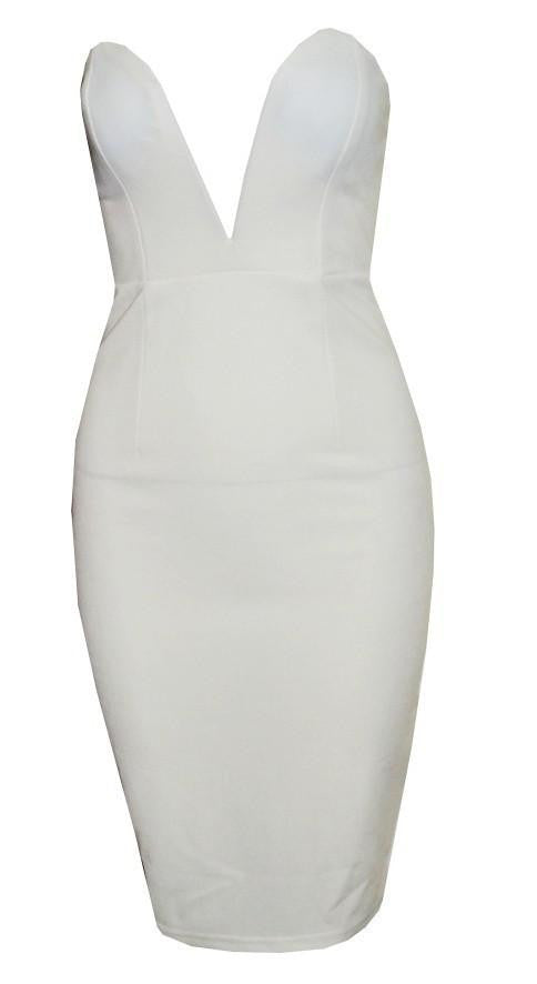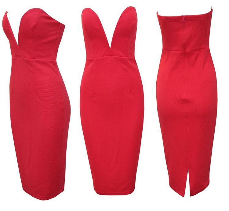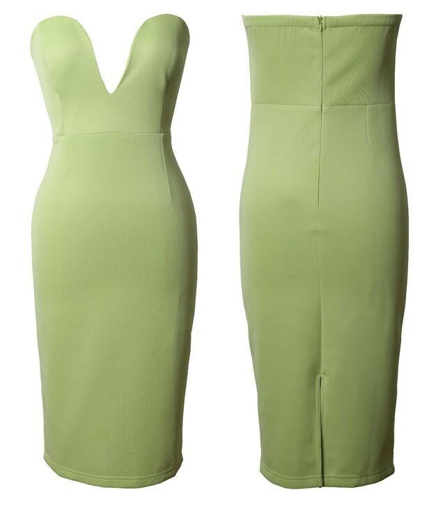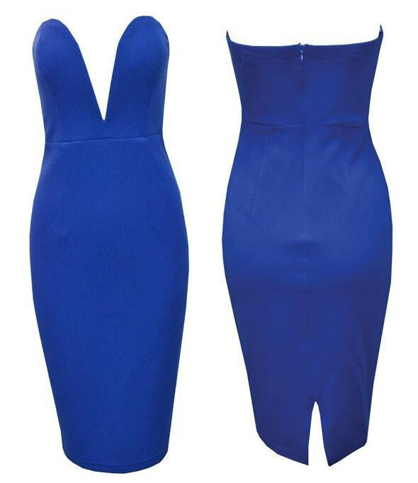 Strut your stuff. This elegant runway dress was created to aforn your fabulous body. With a deep V neckline and sleeveless top this dress we'll get you into the spotlight.