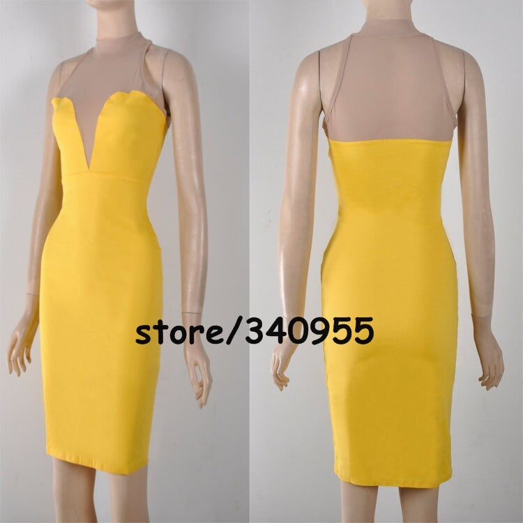 Elevate your wardrobe and embrace your inner goddess with our Women Dresses Patchwork Mesh Sleeveless Cotton Party Evening Pencil Bodycon Dresses. Order yours today and make a lasting impression!